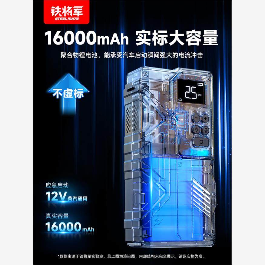 铁将军车载汽车应急启动电源充气一体机电瓶紧急打火搭电宝神器