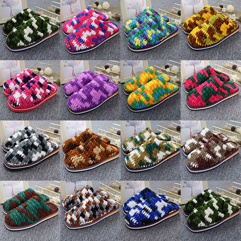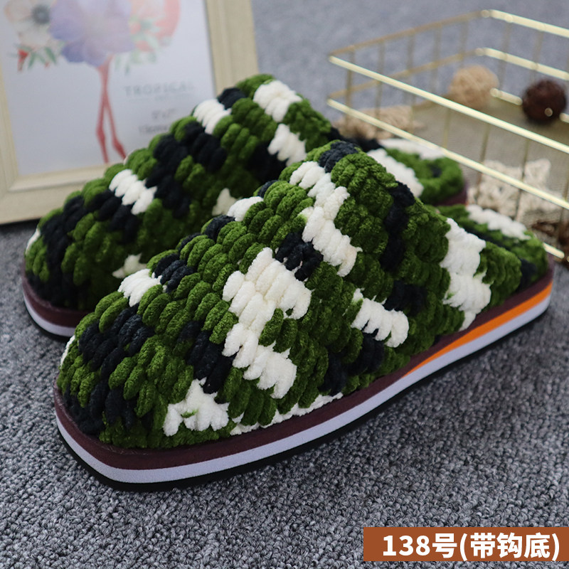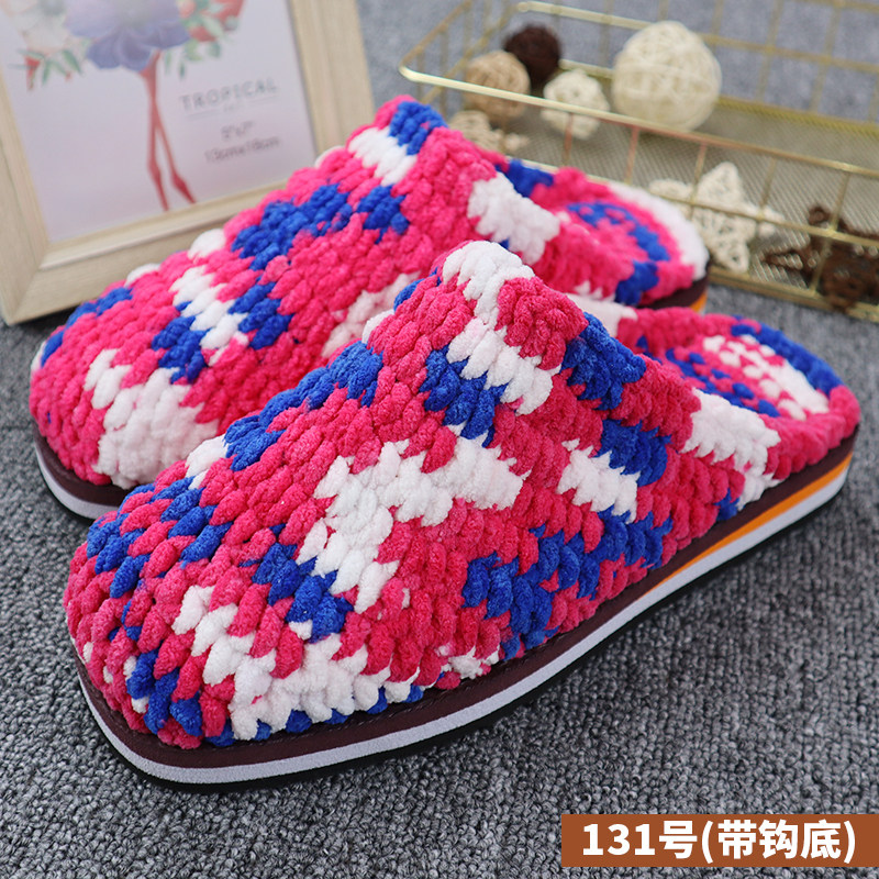 防滑舒适手工勾织粗冰条毛线拖鞋