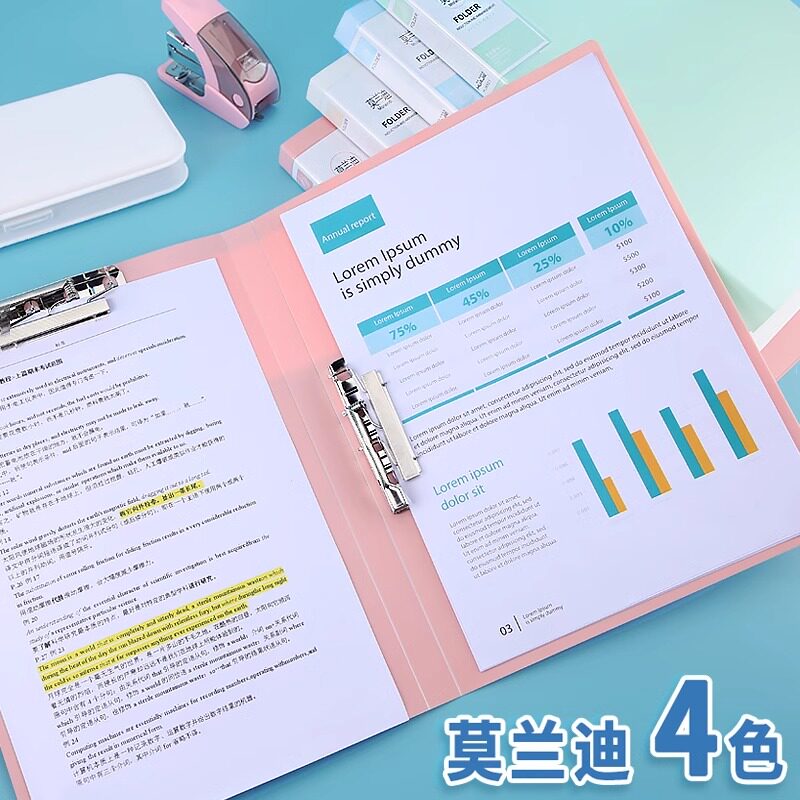 A4文件夹板强力莫兰迪色单双夹会议资料册讲义报告合同试卷收纳分类整理塑料夹子学生卷子板夹办公用品侧标签