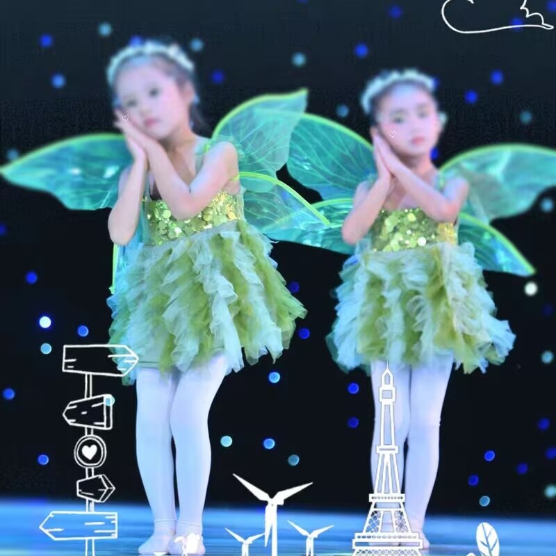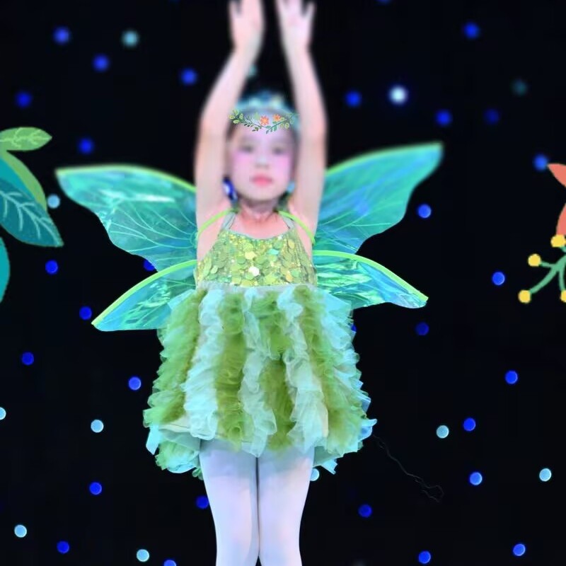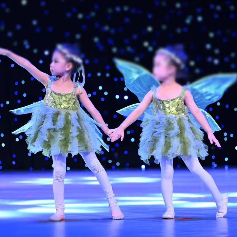 新款闪亮的星萤火虫舞蹈演出服女童公主蓬蓬裙小精灵花仙子表演服