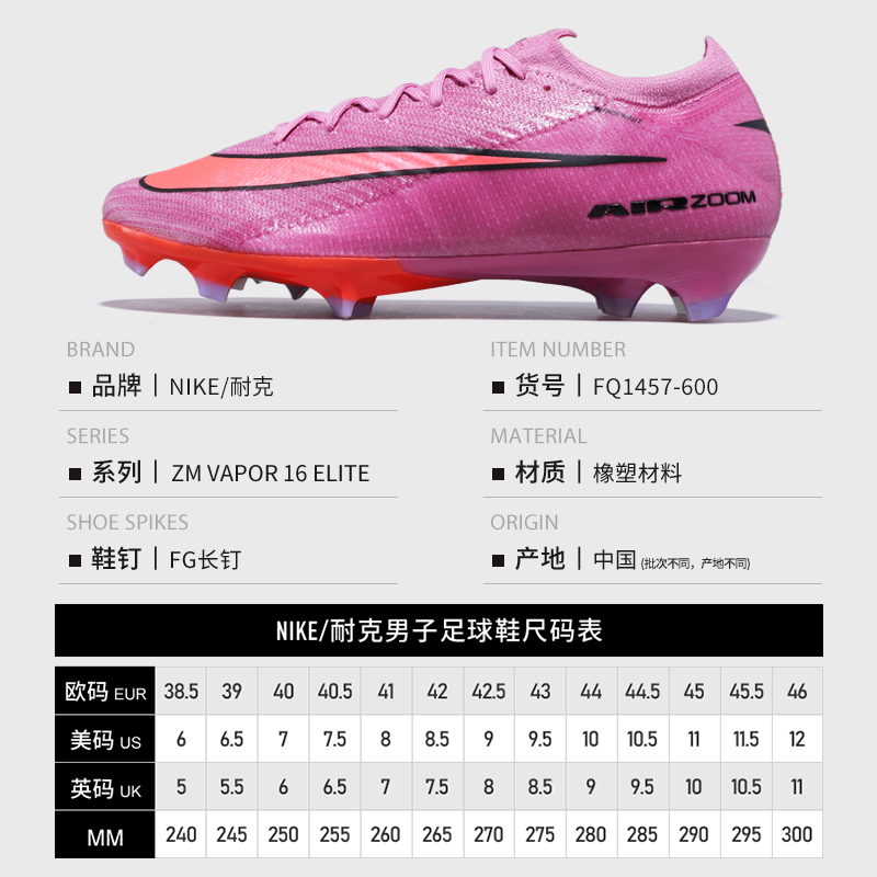 Nike耐克足球鞋男VAPOR刺客16高端FG长钉天然草成人FQ1457-600