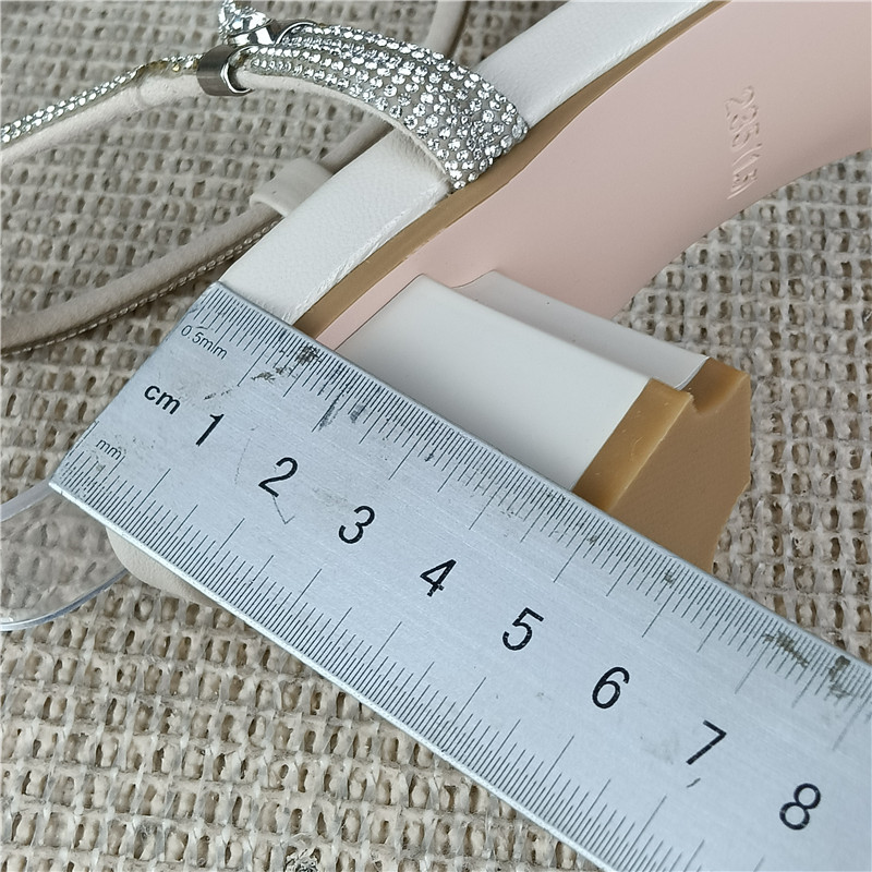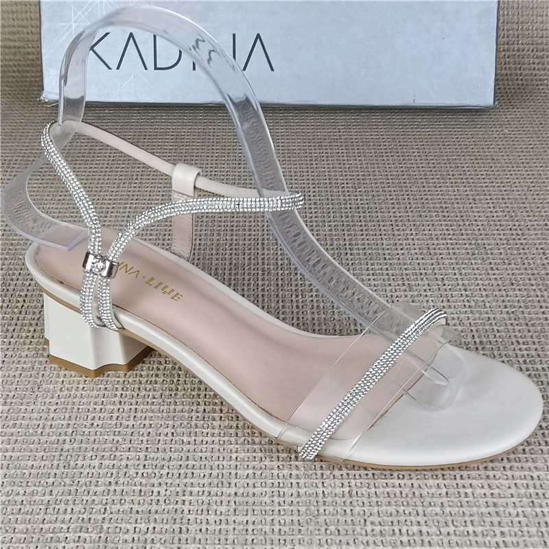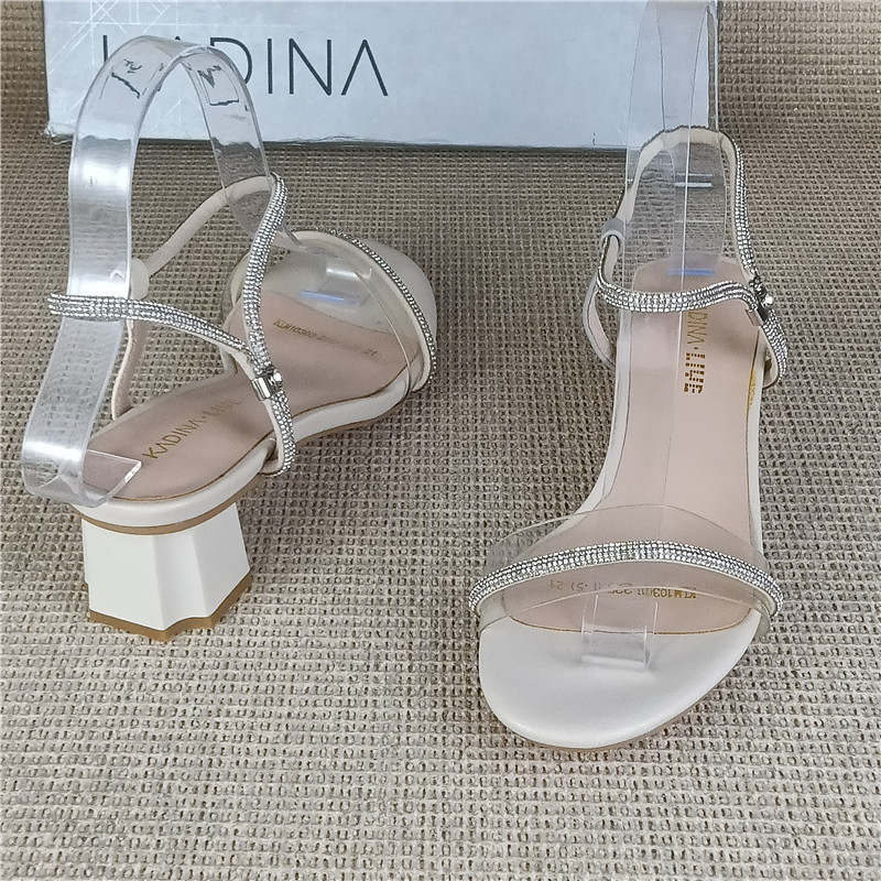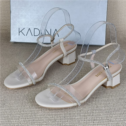 卡迪娜品牌撤柜断码处理真皮女鞋水钻露趾粗跟夏季凉鞋法式凉拖鞋