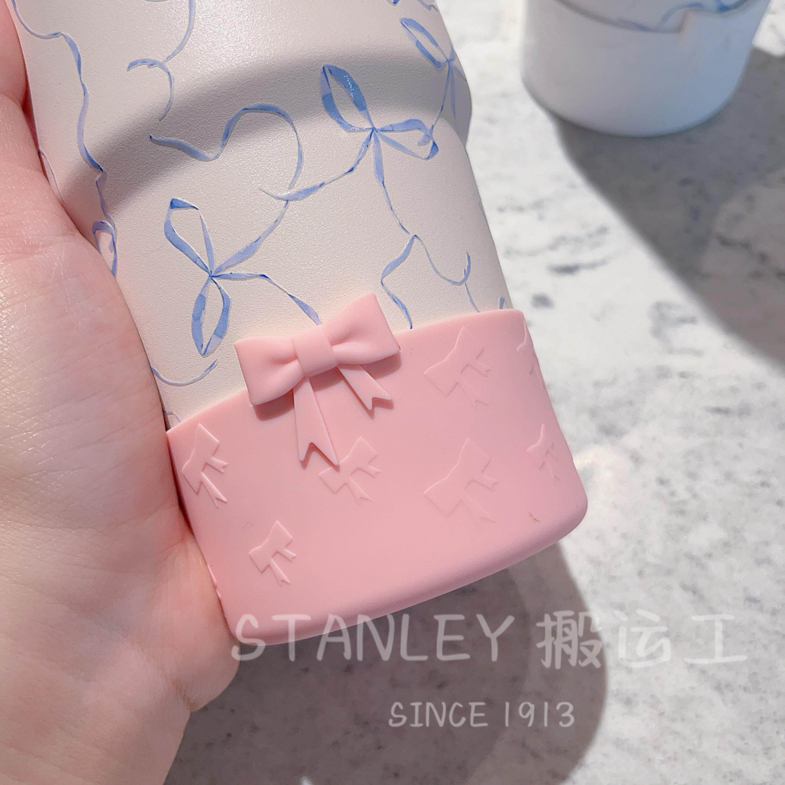 新品stanley杯托杯套装饰蝴蝶结ins风可爱蓝色奶油淡粉防撞防刮