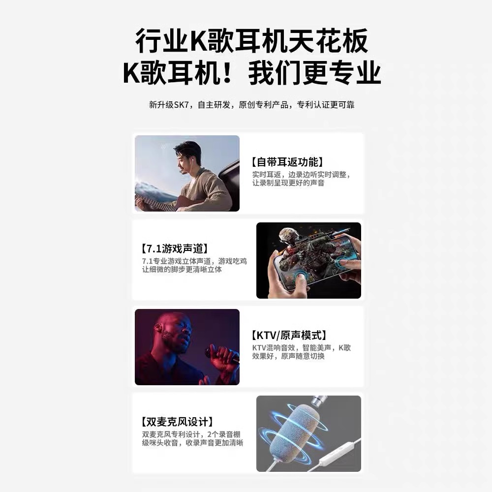原装声卡高音质唱歌专用全民K歌适用oppo华为vivo游戏入耳式耳机