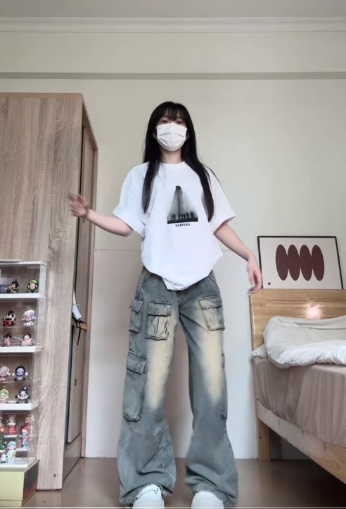 工装牛仔裤低腰牛仔裤休闲长裤子