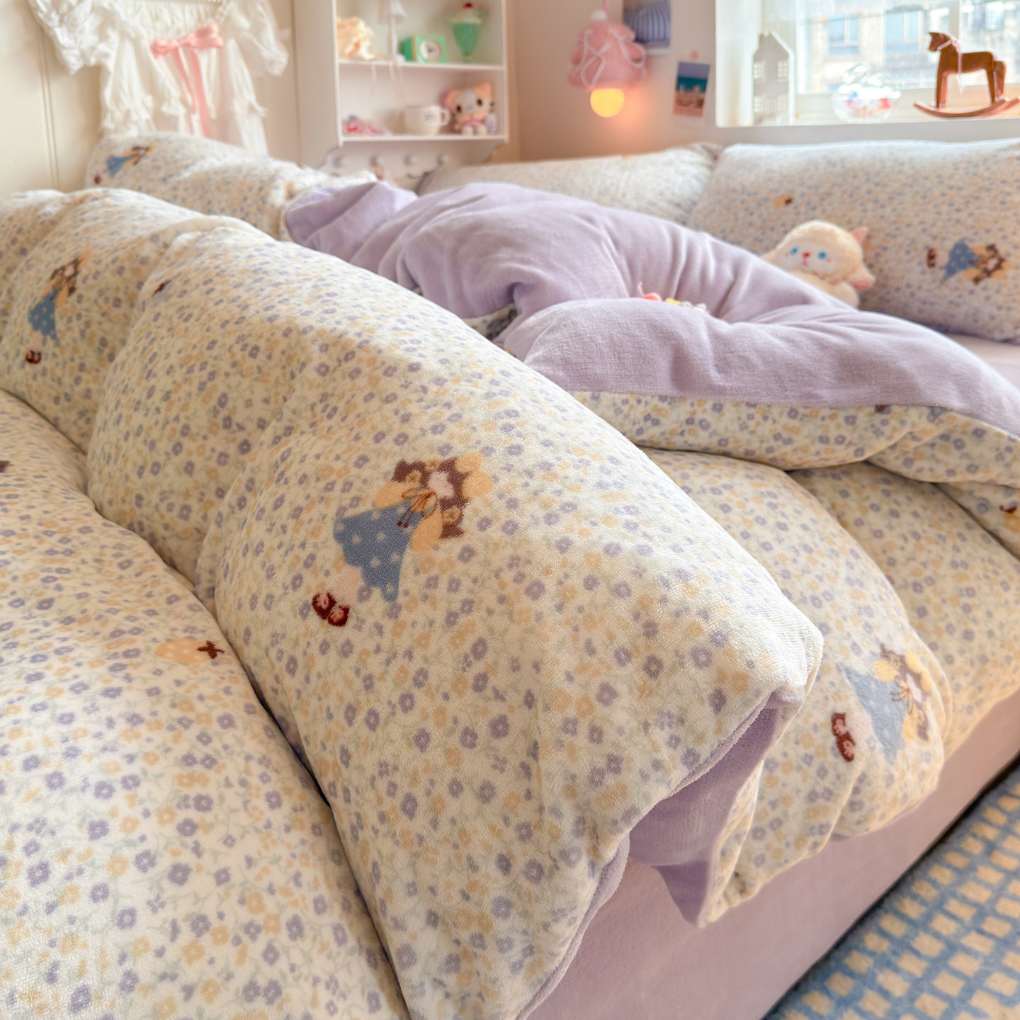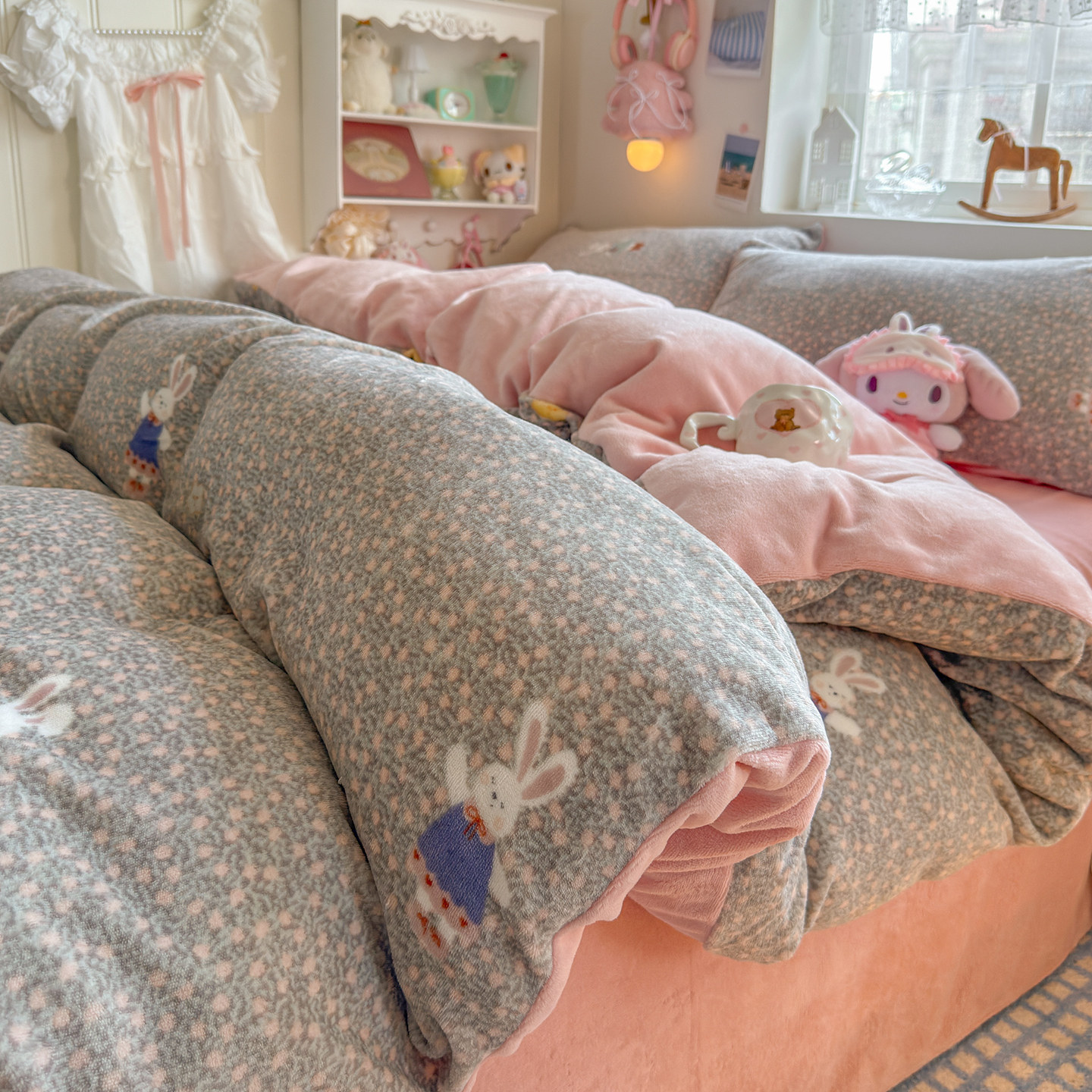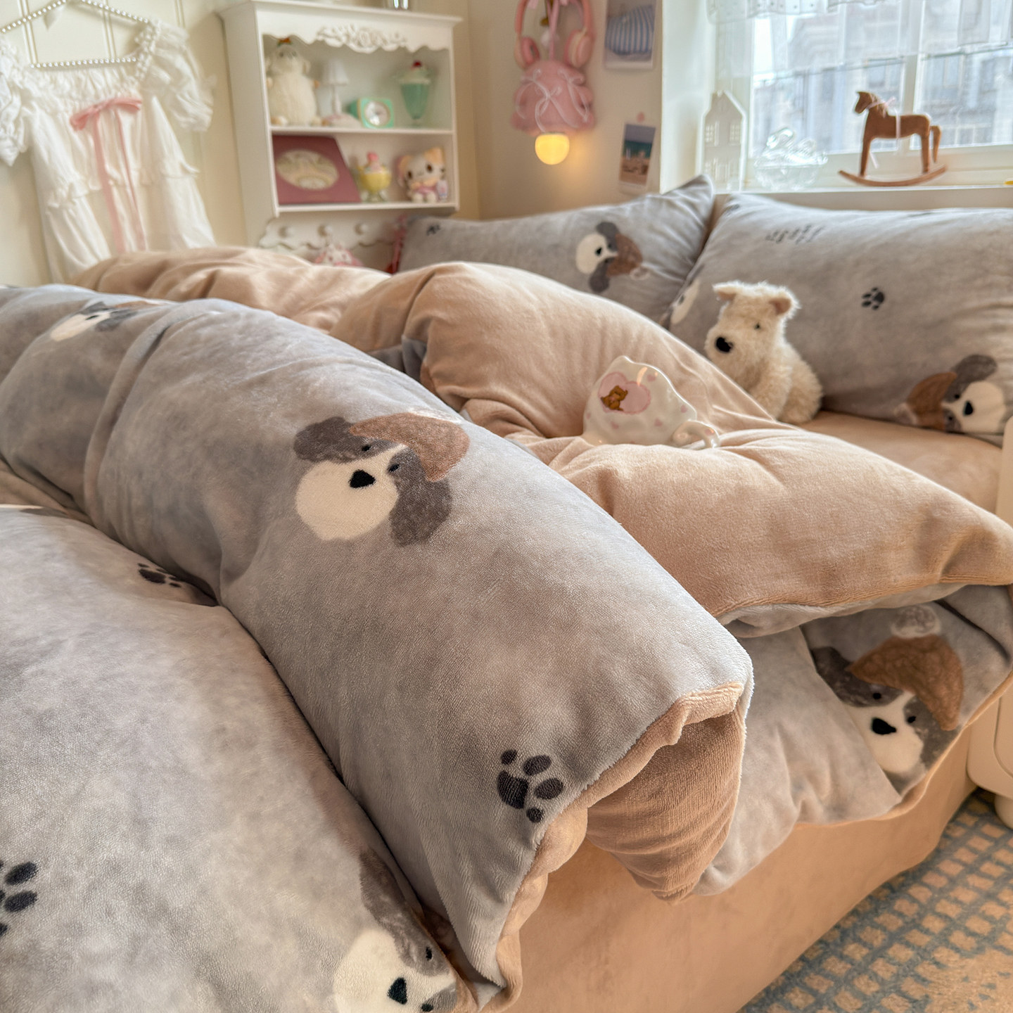 冬季加厚牛奶绒四件套床上双面珊瑚绒被罩加绒床单被套宿舍三件套