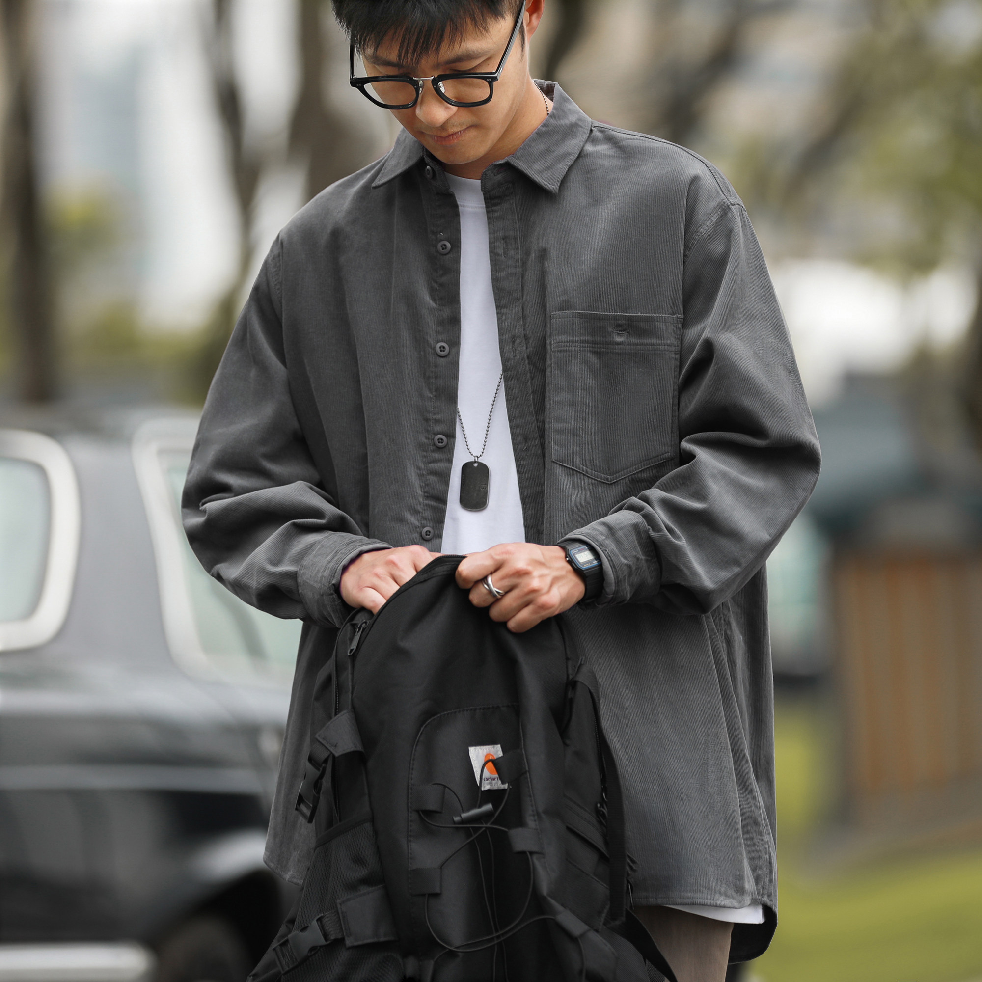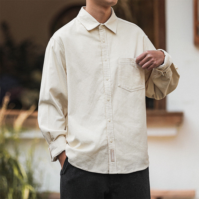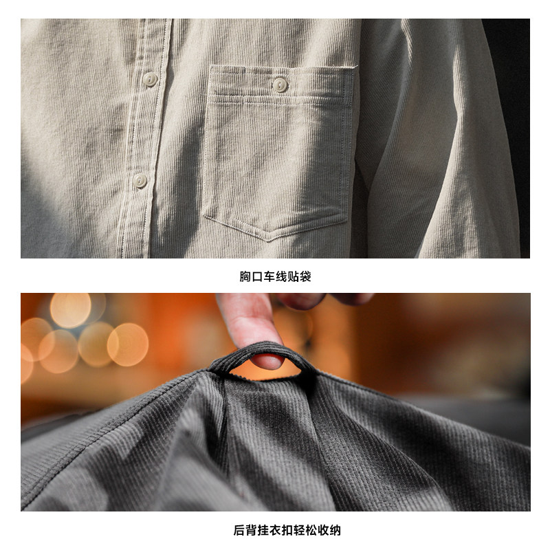 嘿马七作日系复古春秋款灯芯绒翻领衬衫男士休闲长袖衬衣外套潮牌