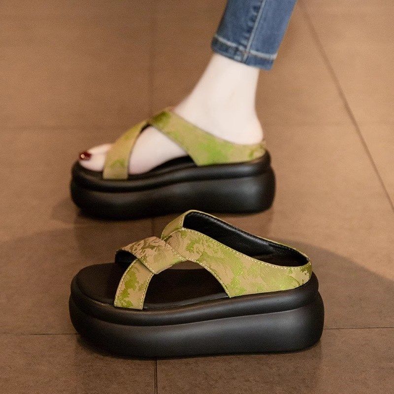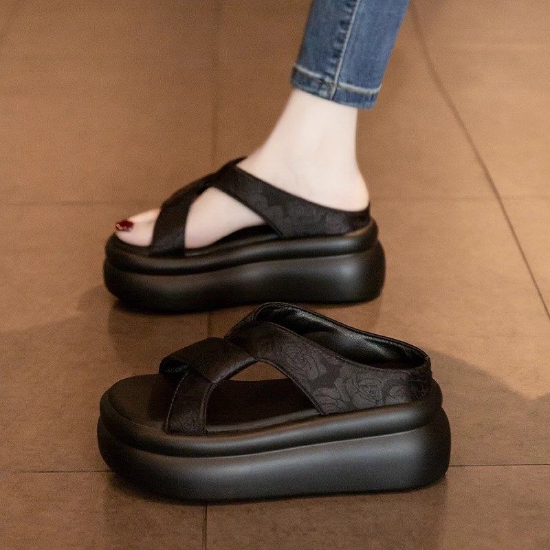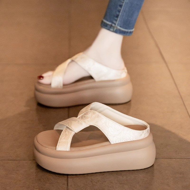 凉拖鞋女夏外穿2025新款百搭女士厚底增高高跟凉鞋孕妇沙滩一字拖