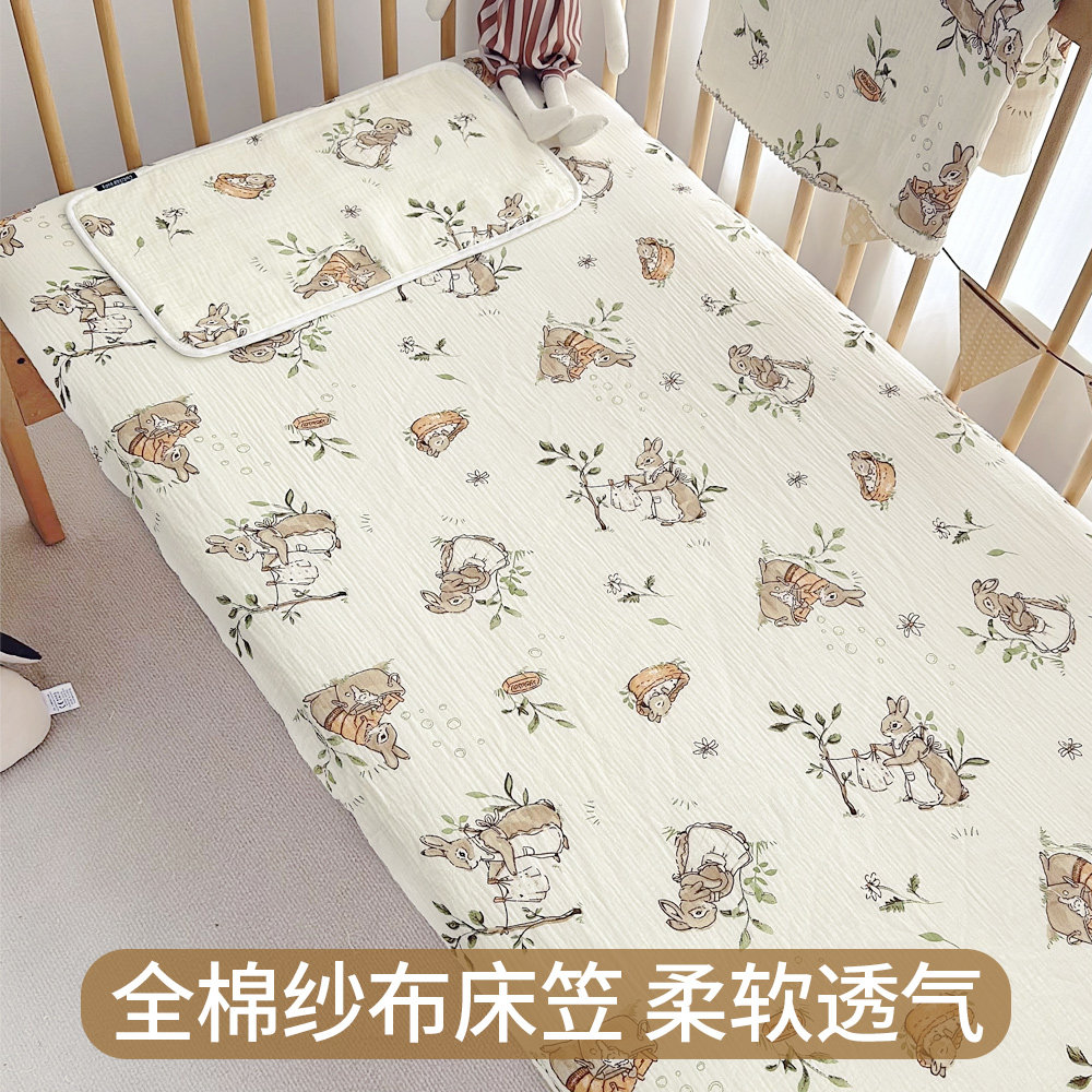 婴儿床床笠儿童拼接纱布床单新生儿宝宝专用纯棉a类床垫罩套定制