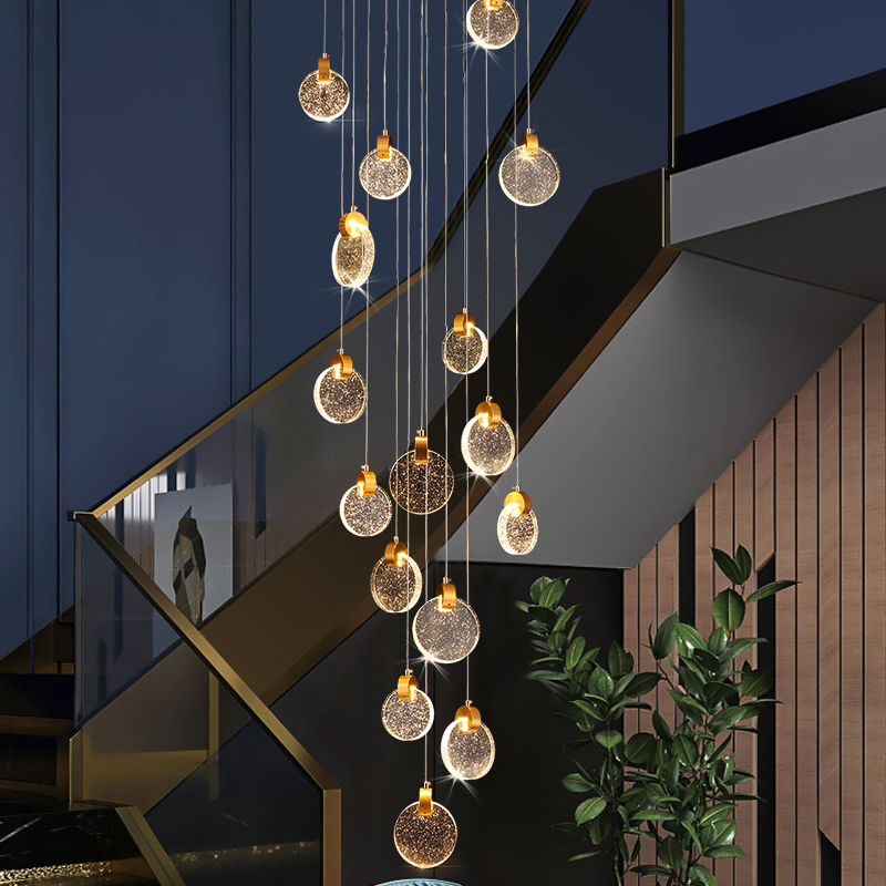 别墅复式楼梯吊灯新款水晶现代简约轻奢旋转loft公寓挑空长吊灯