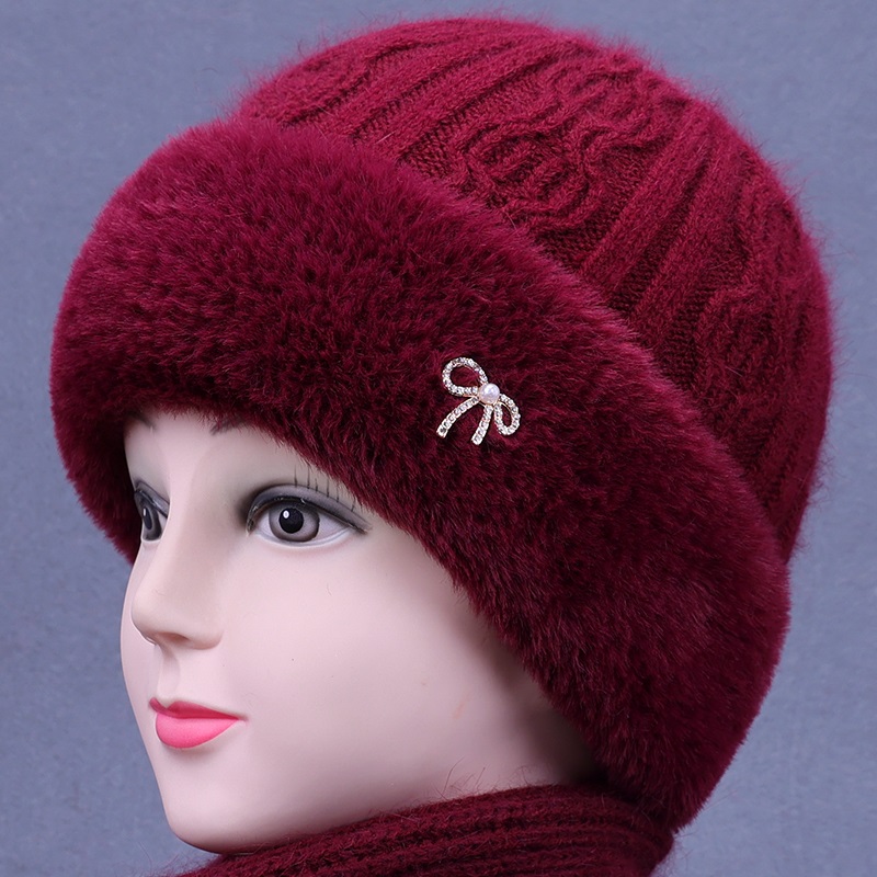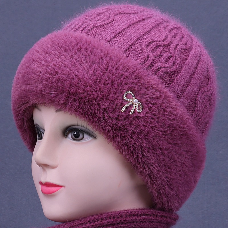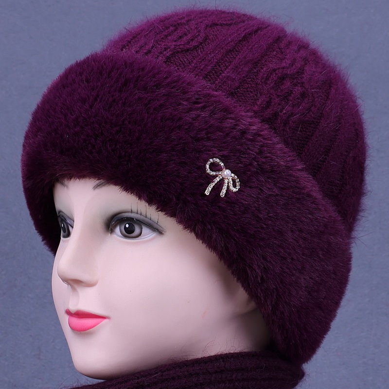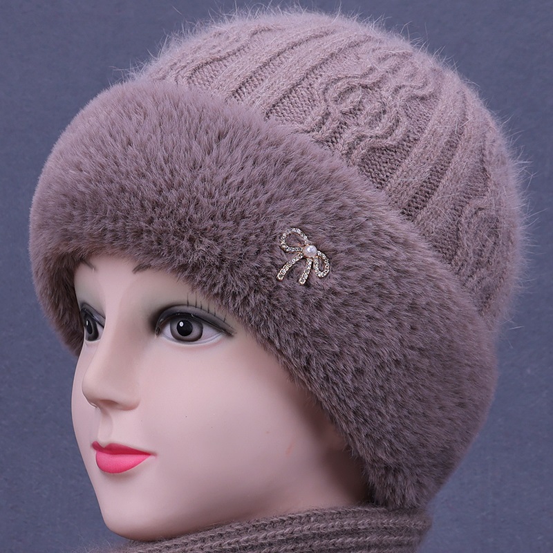 兔毛针织加绒保暖防寒帽洋气妈妈