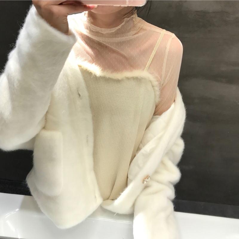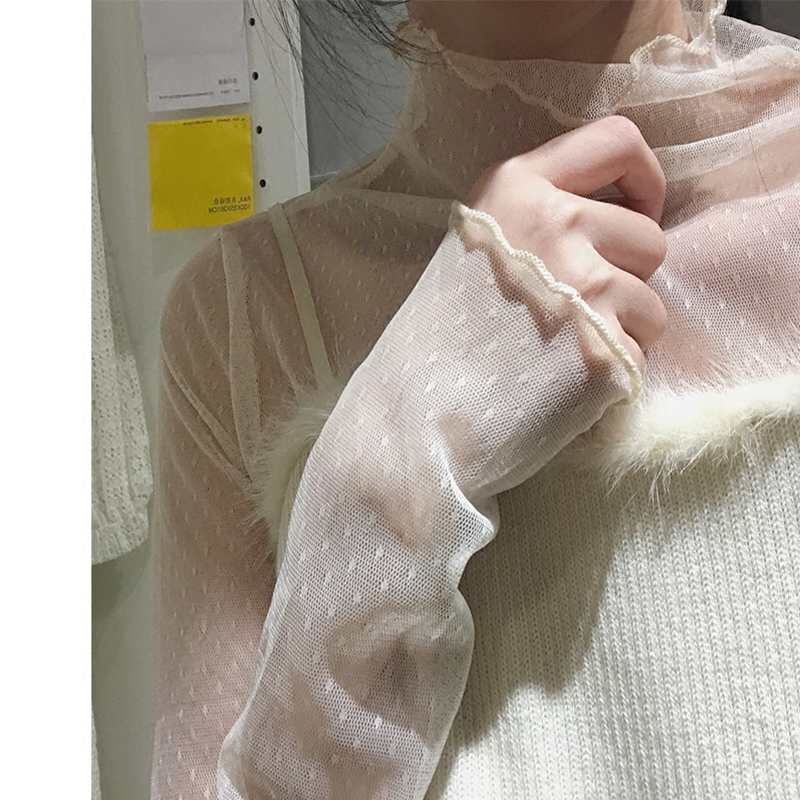 蕾丝打底衫女网纱很仙长袖初秋冬内搭2019洋气透视半高领雪纺上衣
