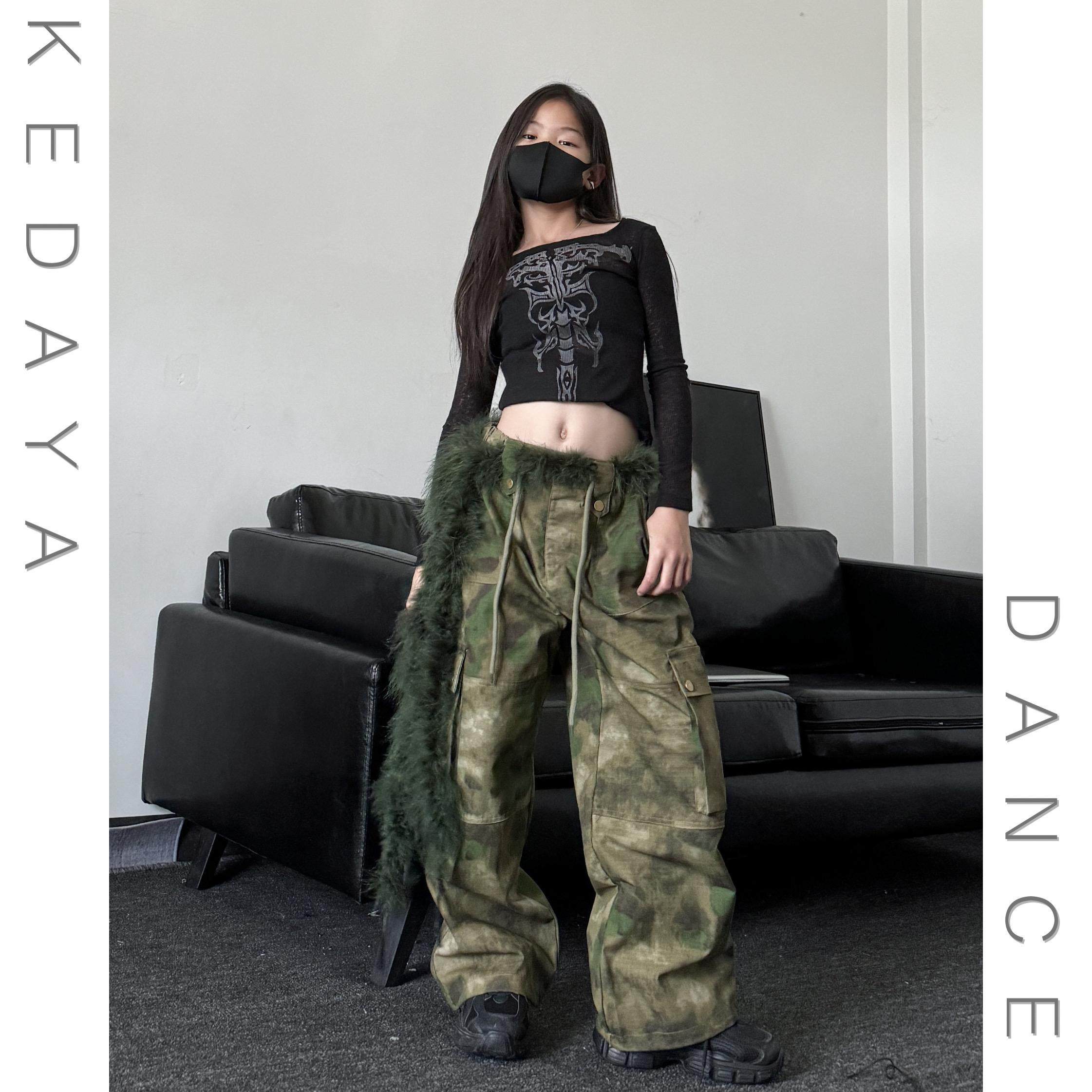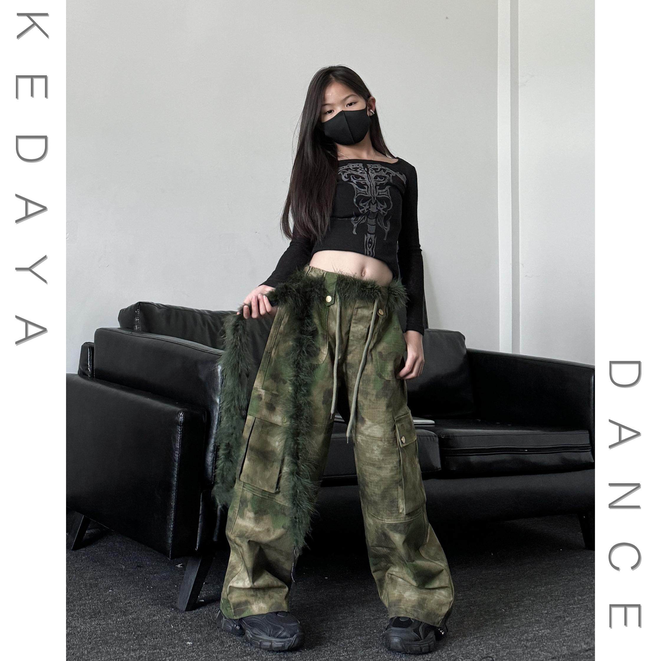 潮酷女童修身上衣迷彩工装裤套装少儿帅气女团爵士舞表演出服套装