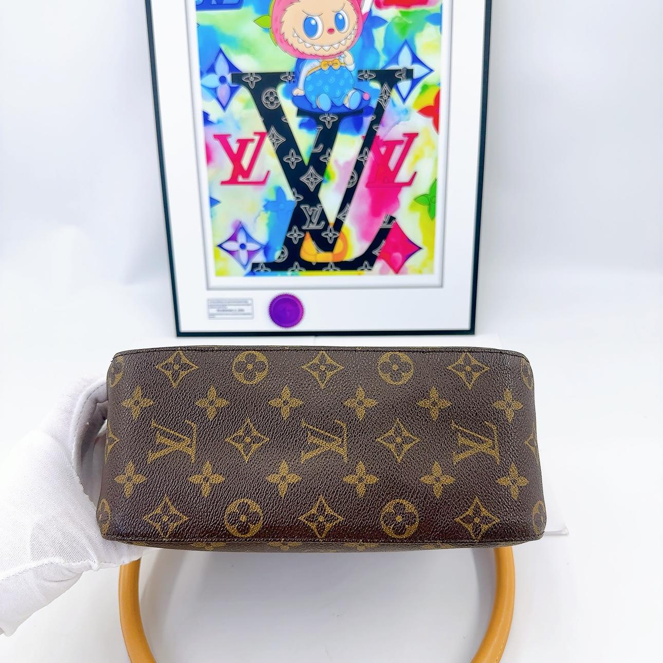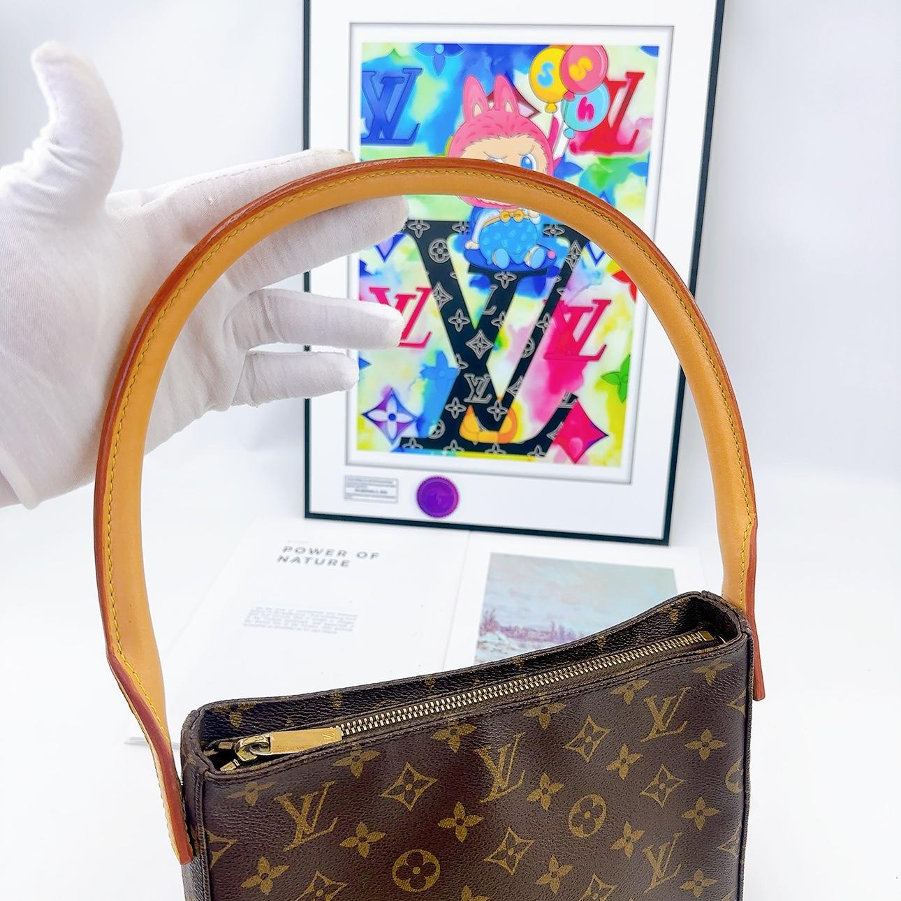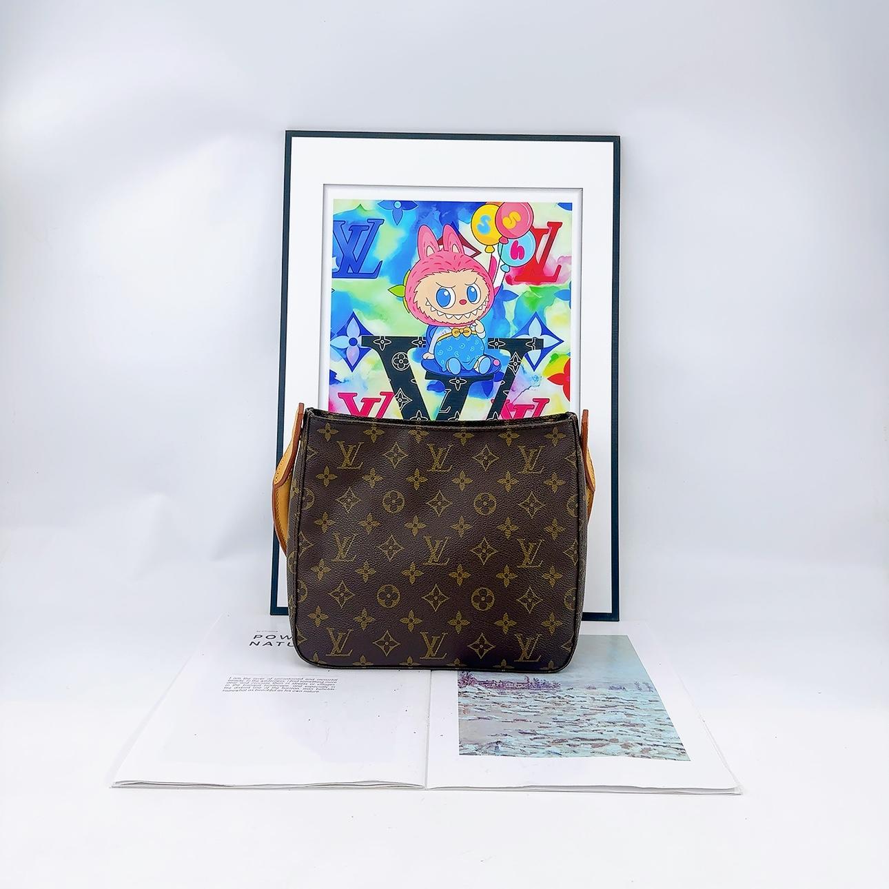 捡漏99新换植鞣皮LV路易威登老花中号looping包内里干净24*21*10