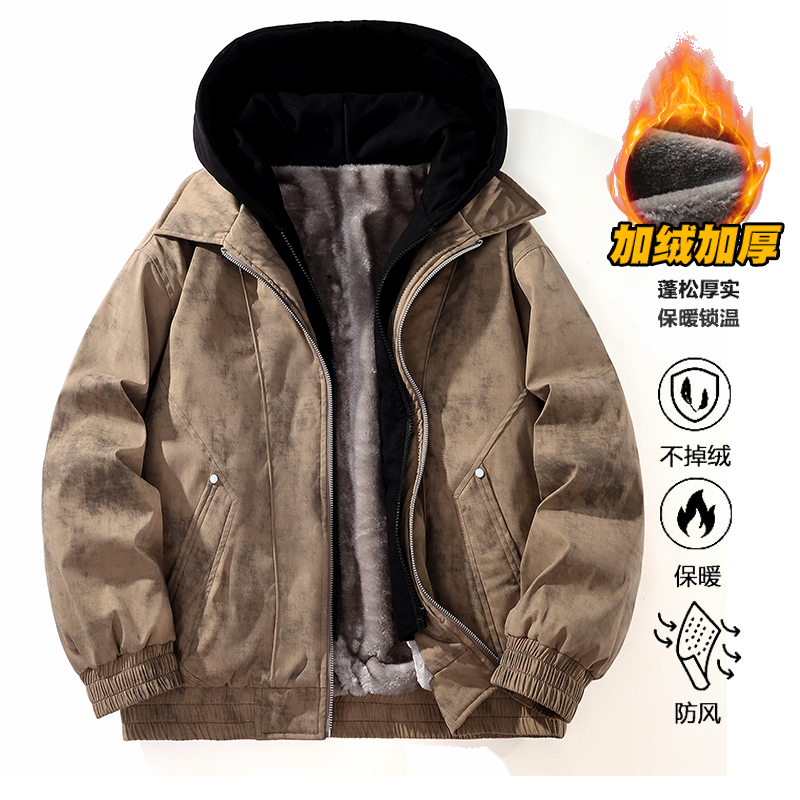 冬季男孩加绒加厚棉衣宽松派克服