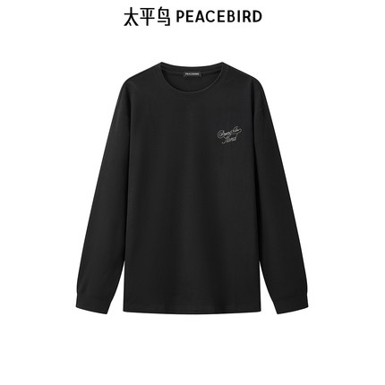 太平鸟男装圆领套头衫T恤秋季长袖打底上衣潮休闲男士百搭套头衫