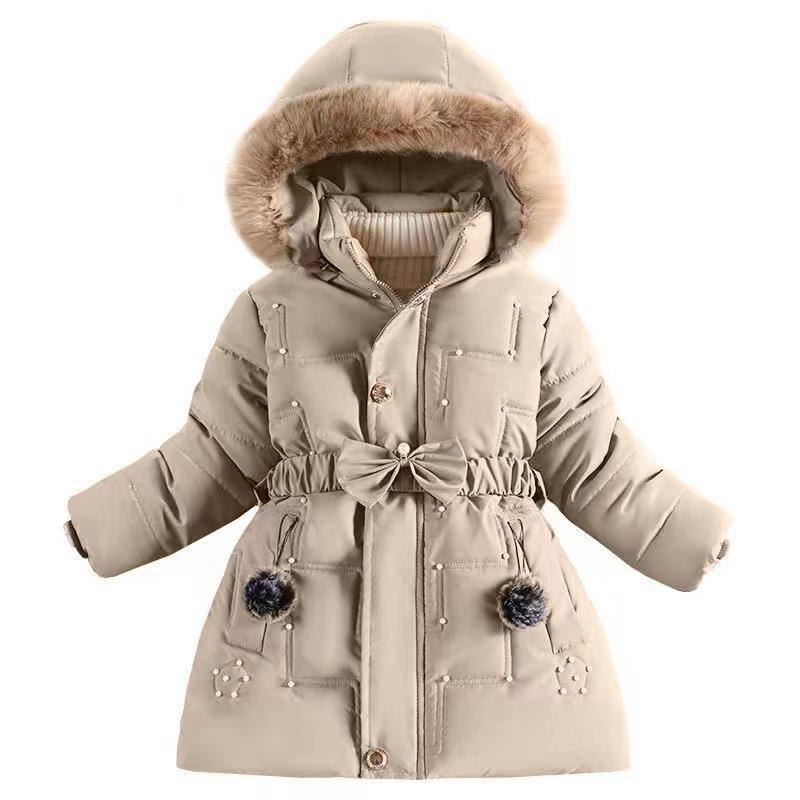 女童冬装加绒加厚外套洋气中大童中长款小女孩棉袄时尚新外贸专供