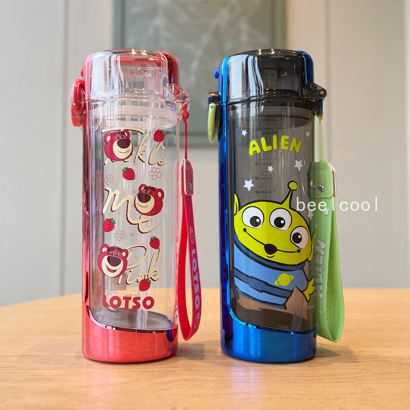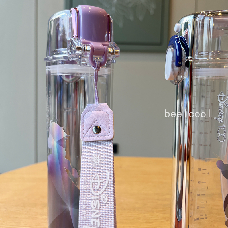 迪士尼塑料杯三眼草莓熊米奇男女孩方形创意双饮便携水壶大容量