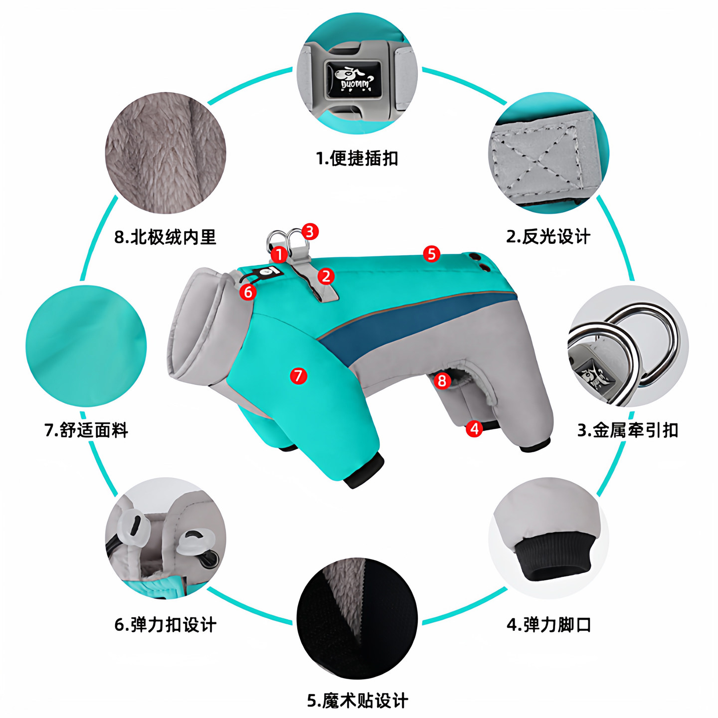 2025新款泰迪宠物狗狗冬天冬季防寒厚四脚衣服可牵引中小型犬冬装
