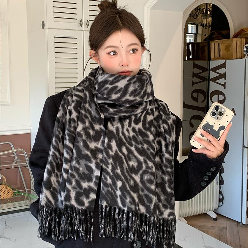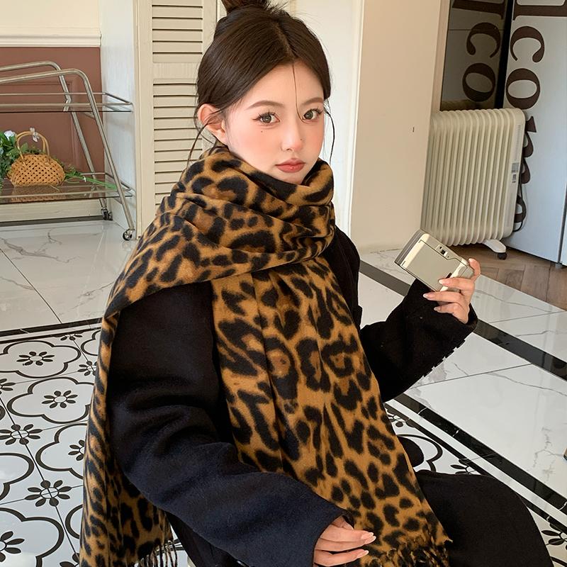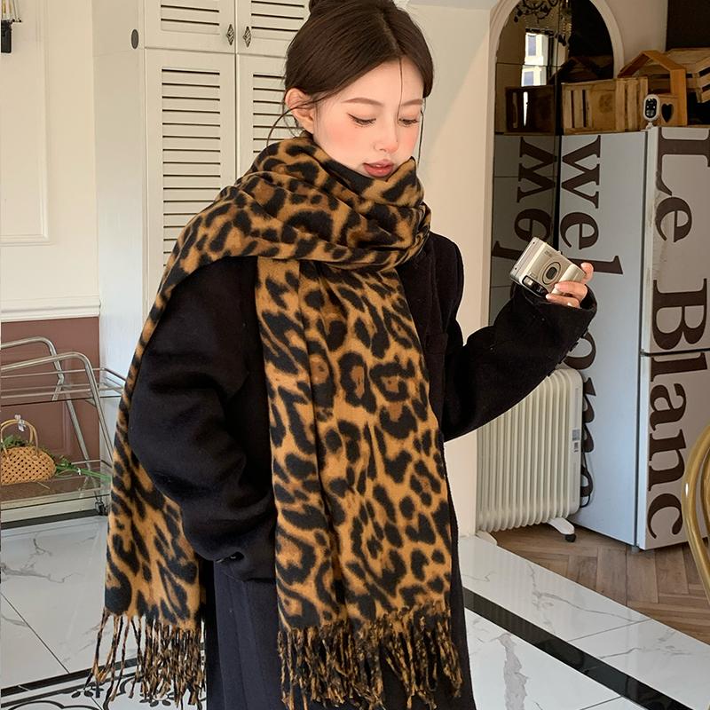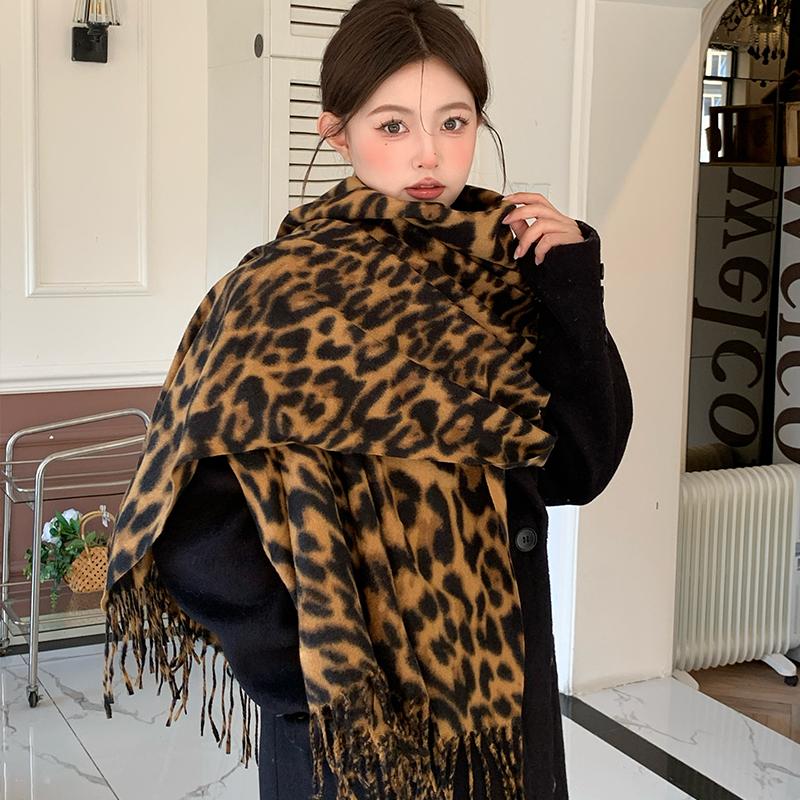 甜酷复古豹纹流苏围巾女2025新款千禧辣妹风秋冬加厚亲肤披肩围脖