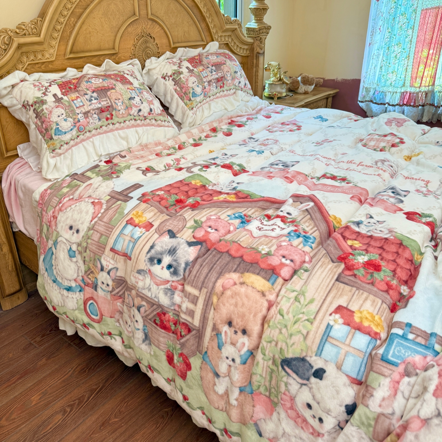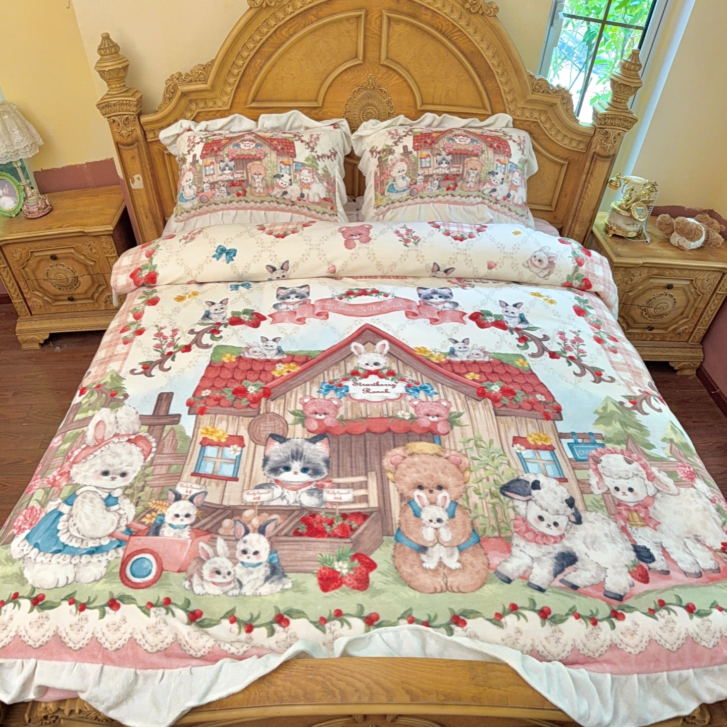 梨梦 少女心可爱lolita牛奶绒四件套保暖珊瑚绒床单被套床上用品