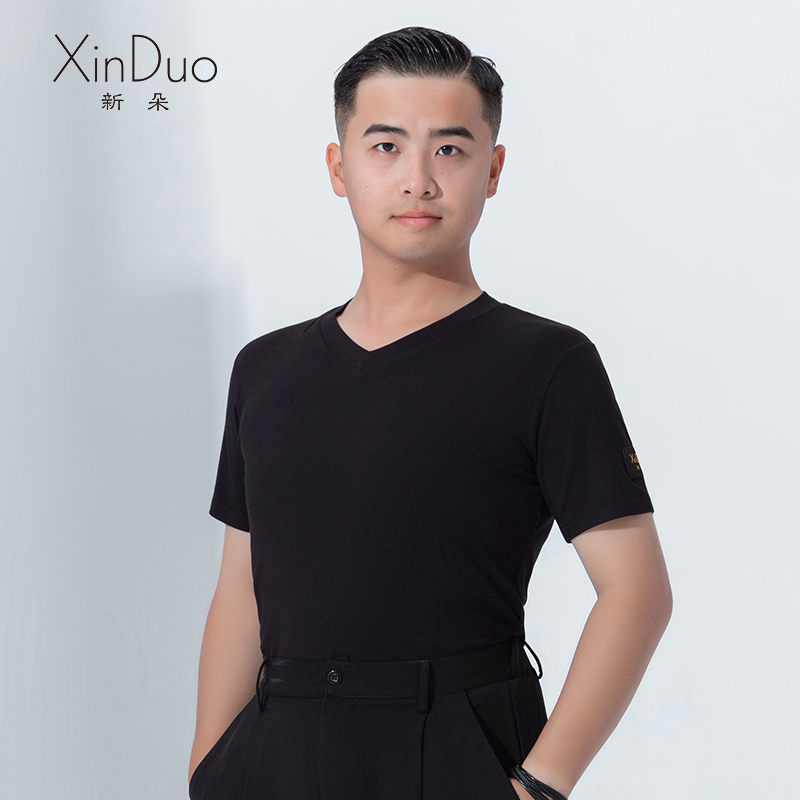 新朵拉丁舞服男士短袖上衣圆领