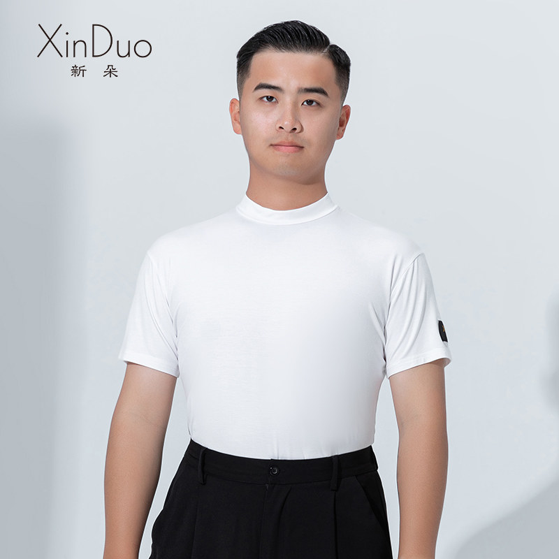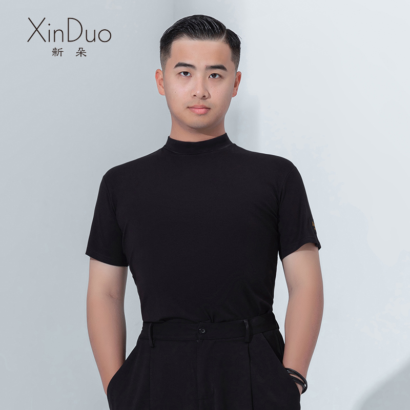 新朵拉丁舞服男士秋季新款高领短袖上衣国标舞交谊舞摩登舞练功服