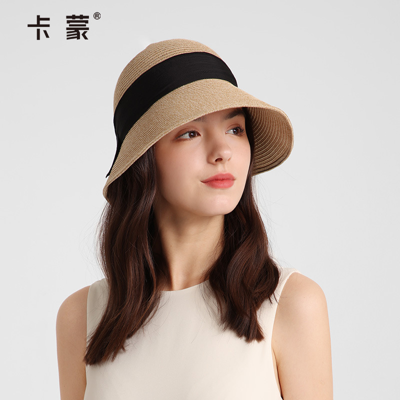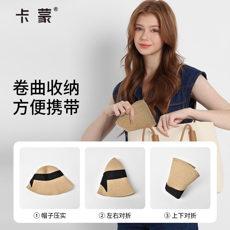 卡蒙加密编织防晒草帽女夏季可折叠新款显脸小遮阳渔夫帽防紫外线