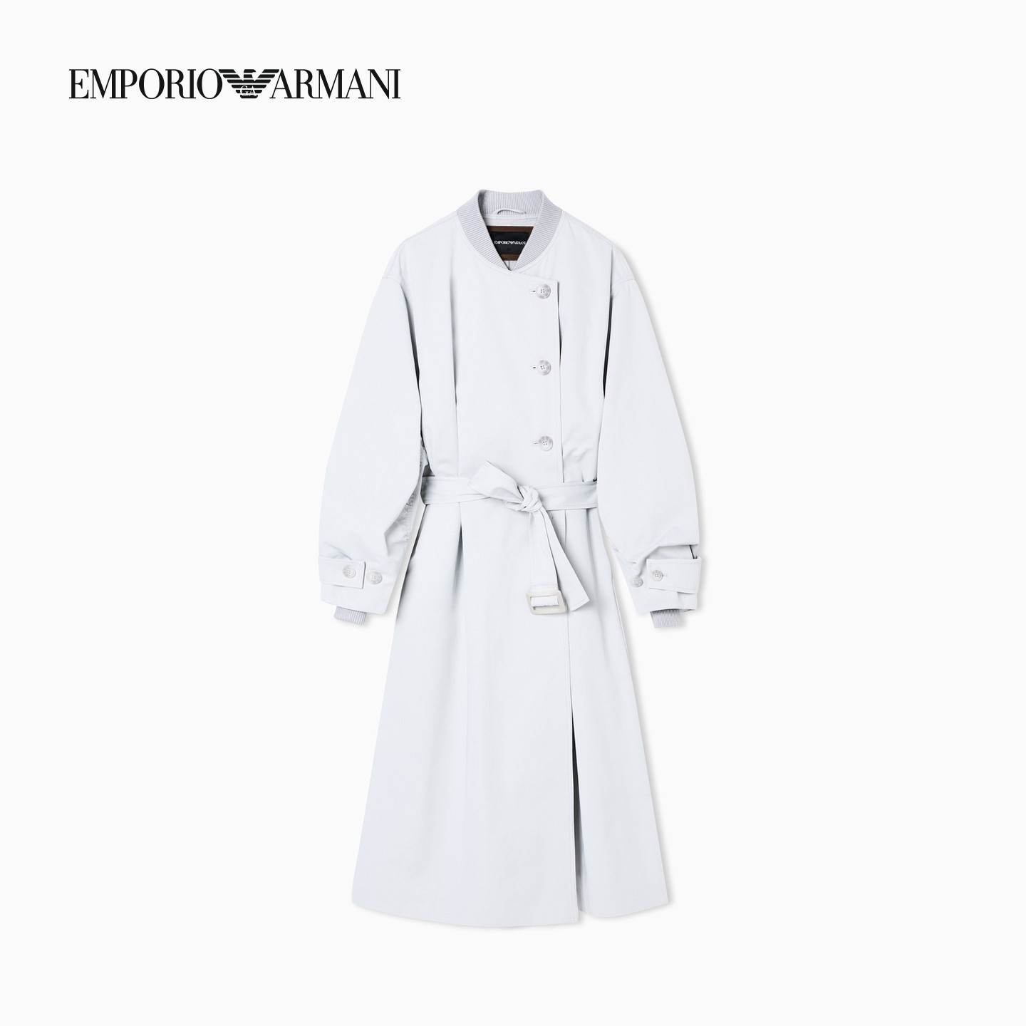 EMPORIO ARMANI/阿玛尼春新款女士秀场同款长款棒球领配腰带风衣