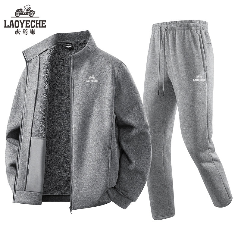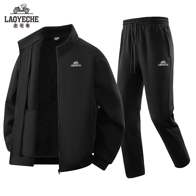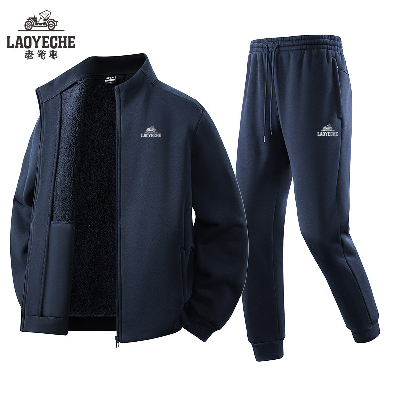老爷车羊驼绒立领加绒加厚秋冬纯棉爸爸卫衣运动套装男中老年休闲