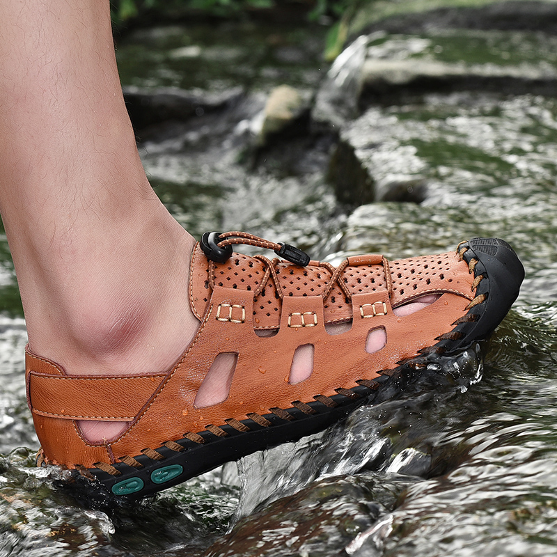 正品男鞋清仓断码特价真皮夏季包头凉鞋镂空洞洞皮凉鞋48大码鞋