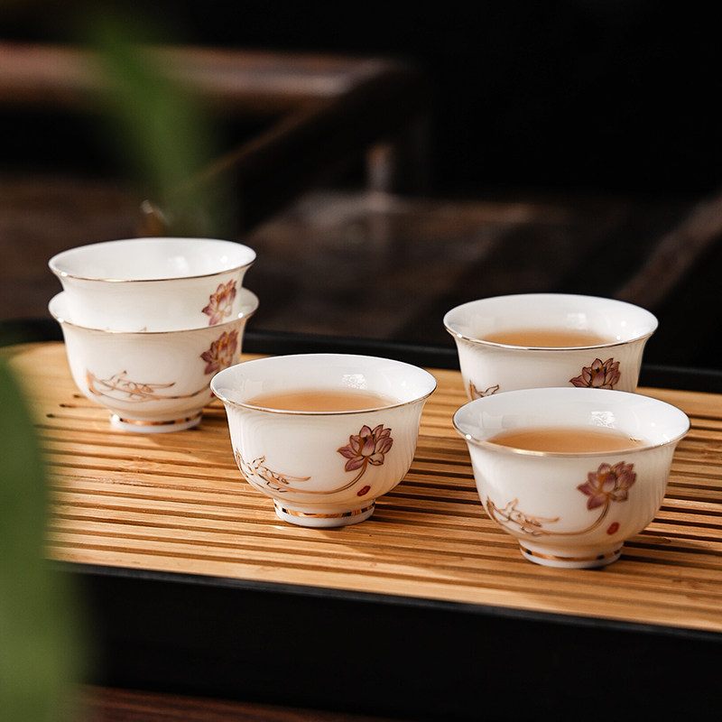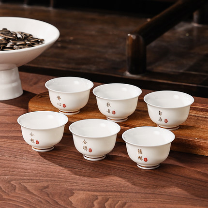 功夫喝茶杯6只装单个杯子陶瓷羊脂玉家用茶具白瓷品茗杯待客刻字