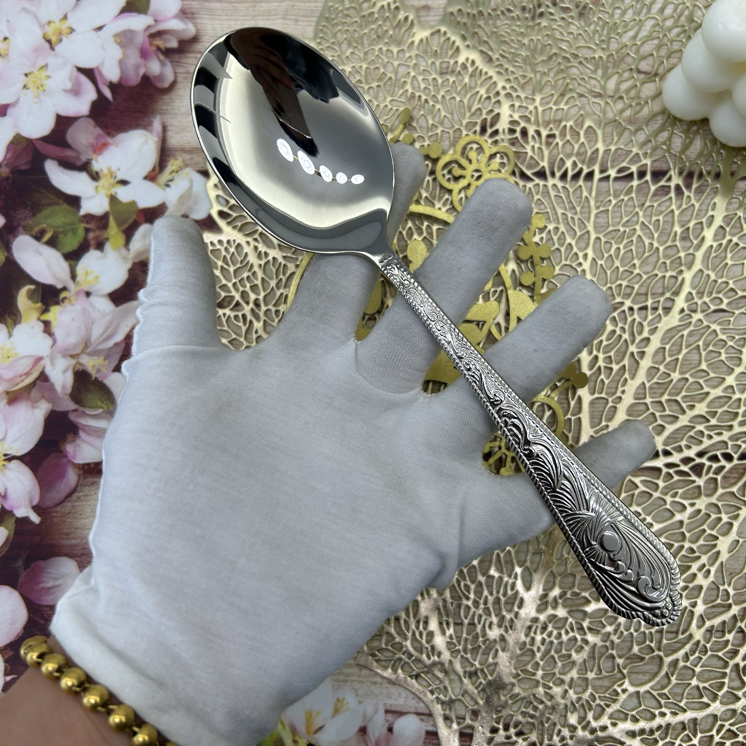 出口高端好货不锈钢圆头勺吃饭勺子喝粥勺调羹主餐勺大头分餐勺厚