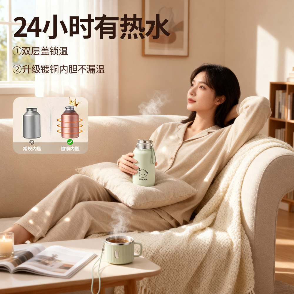 保温杯女生士2025新款高颜值上学生用不锈钢泡茶盖水杯子大容量