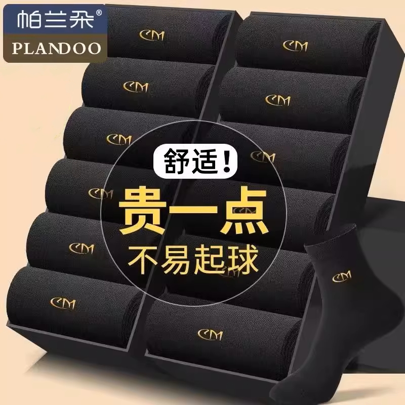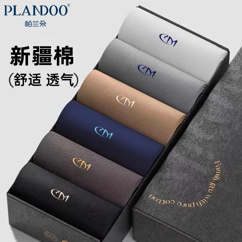 帕兰朵男士袜子四季款纯色商务袜春秋吸汗透气秋冬新疆棉中筒袜