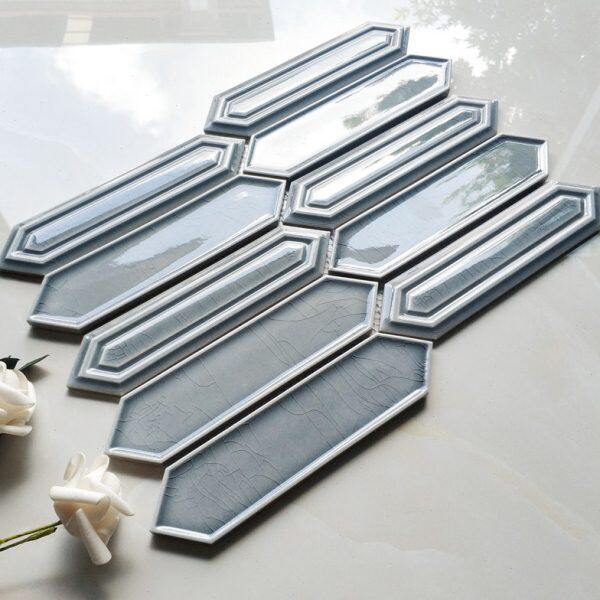 现代简约凹凸陶瓷箭形马赛克餐厅咖啡店吧台卫生间瓷砖背景墙装饰