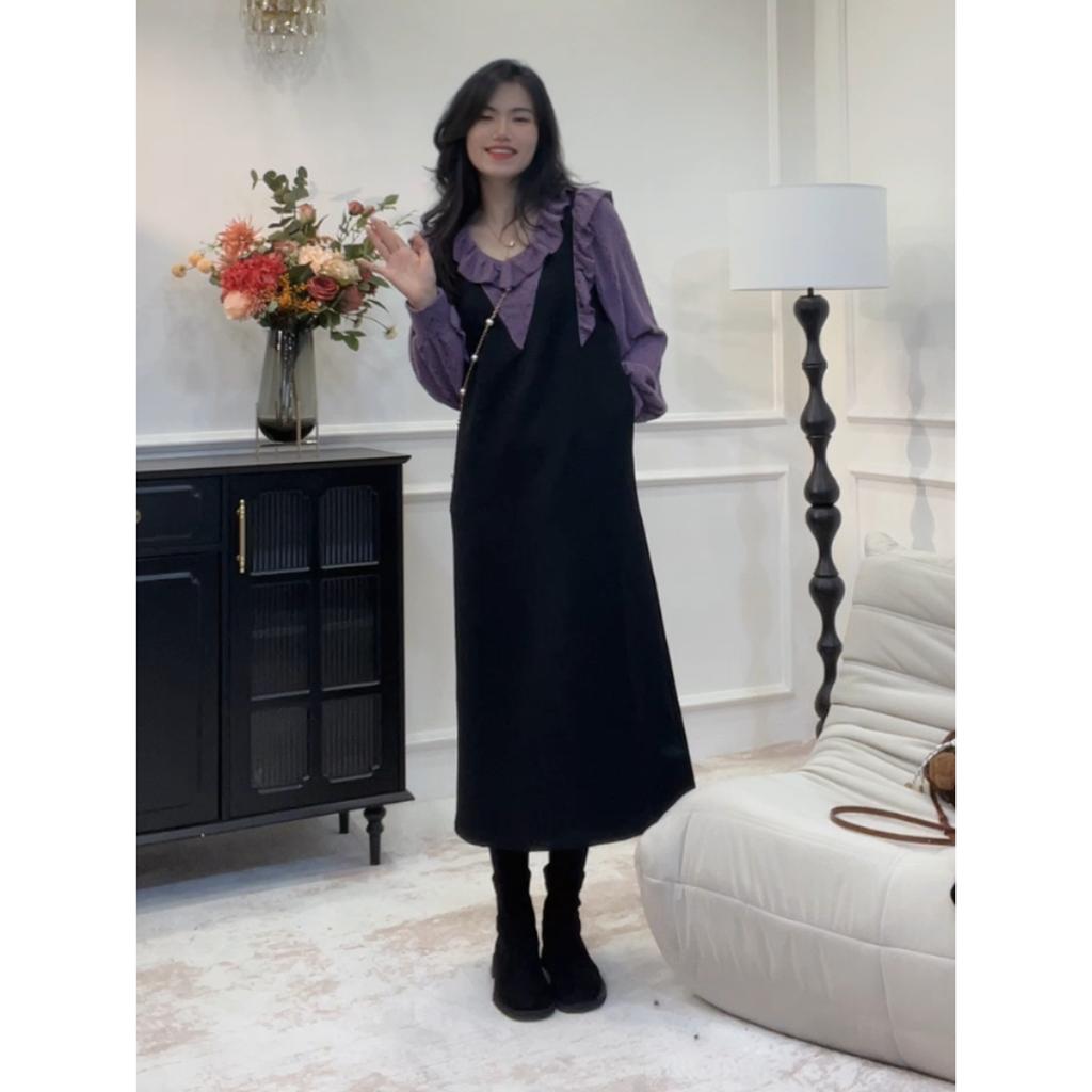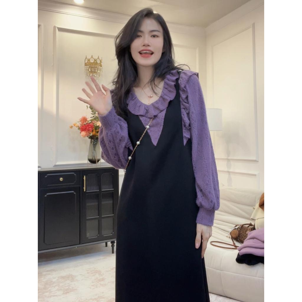 【挪威恋人】假两件小众设计拼接秋冬季新款高级感显瘦连衣裙女