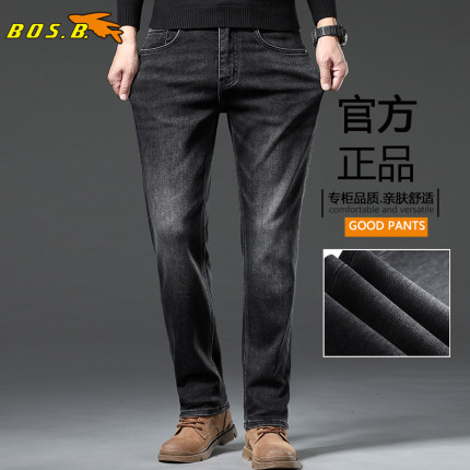 博世堡飞鱼牛仔裤男士秋冬季新款怀旧摩登弹力舒适修身直筒裤长裤