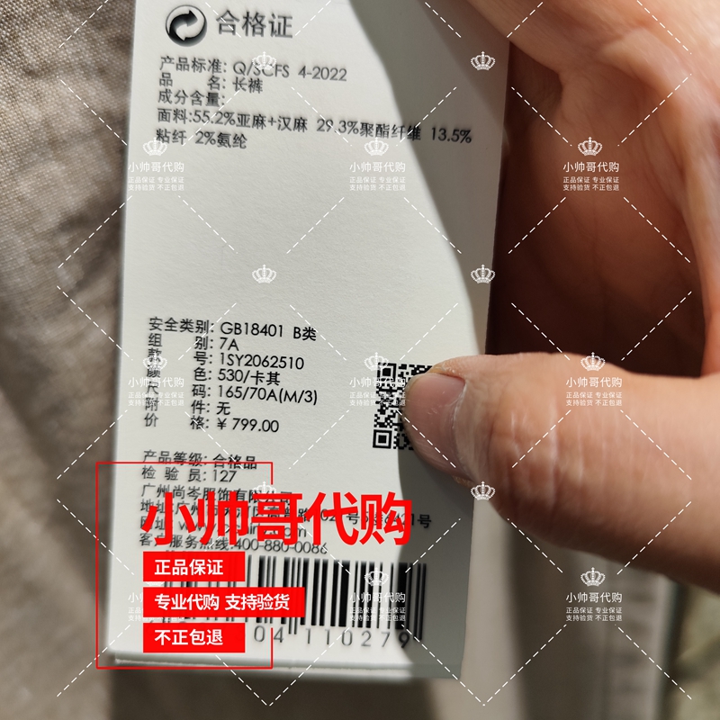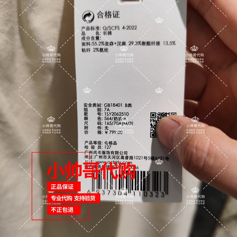 现货 1SY2062510 7A欧时力2025夏款专柜正品休闲直筒梭织长裤-799