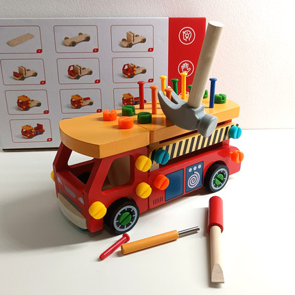儿童消防车螺母拆装组合木制工具套装动手能力培养幼儿园益智玩具