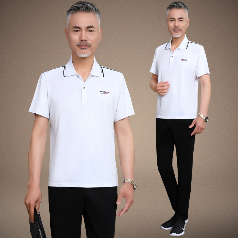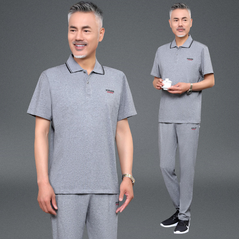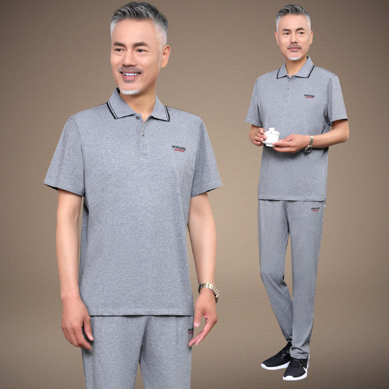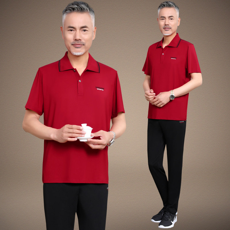 爸爸夏装套装中年男士短袖t恤2025款中老年人运动休闲父亲节衣服