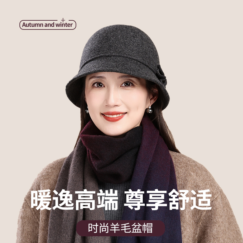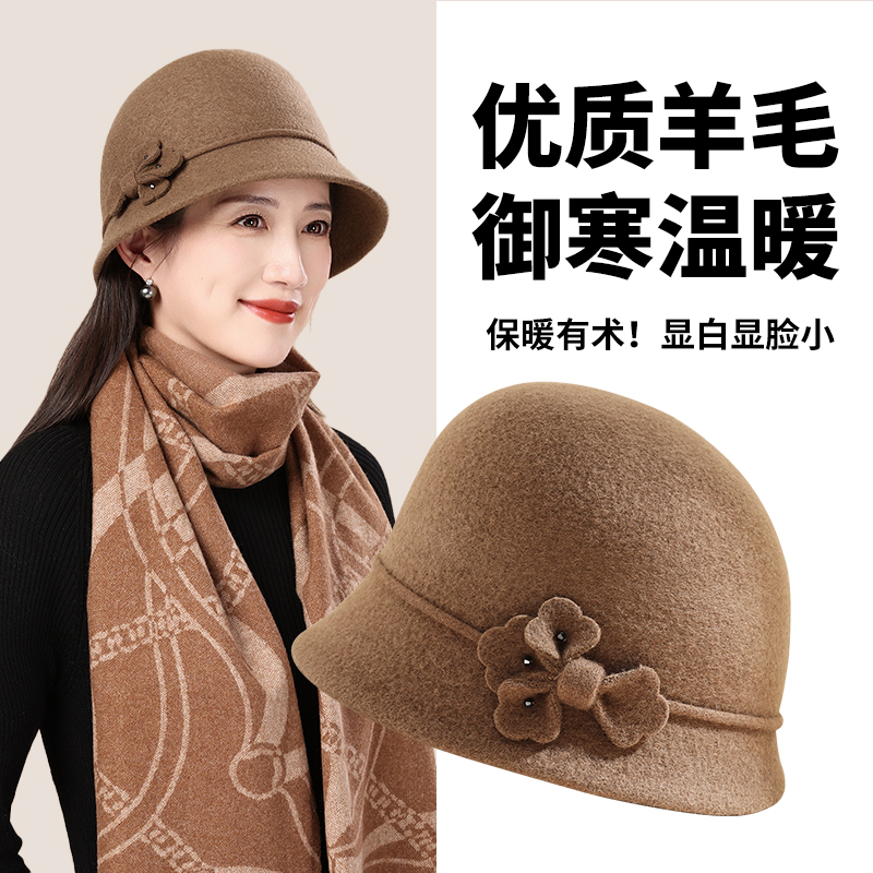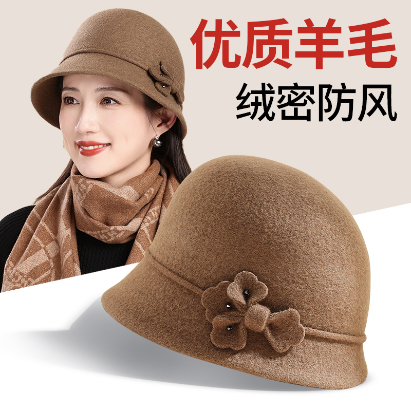 中老年帽子女士冬季新款羊毛盆帽保暖秋冬天老太太奶奶洋气妈妈帽