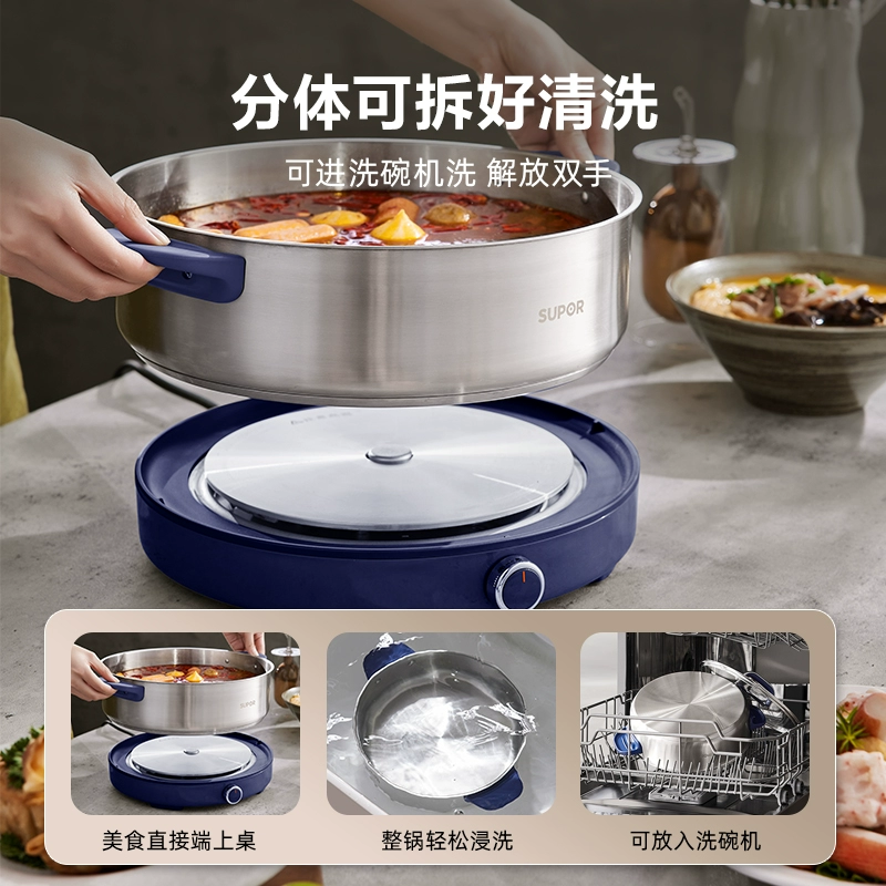 苏泊尔电火锅H40YKX57分体式家用多功能大容量料理可拆洗新款火锅