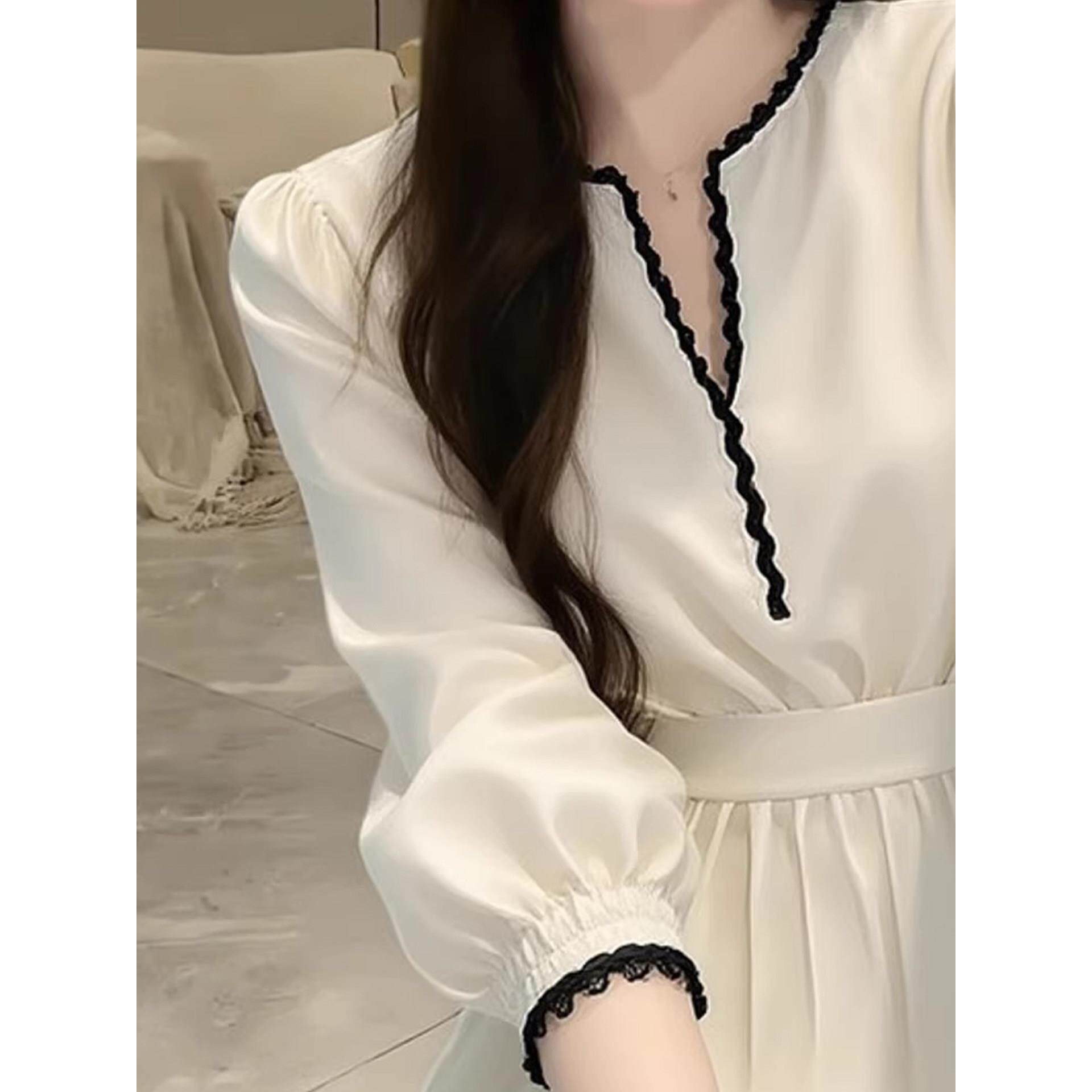 韩系氛围感白色v领衬衫