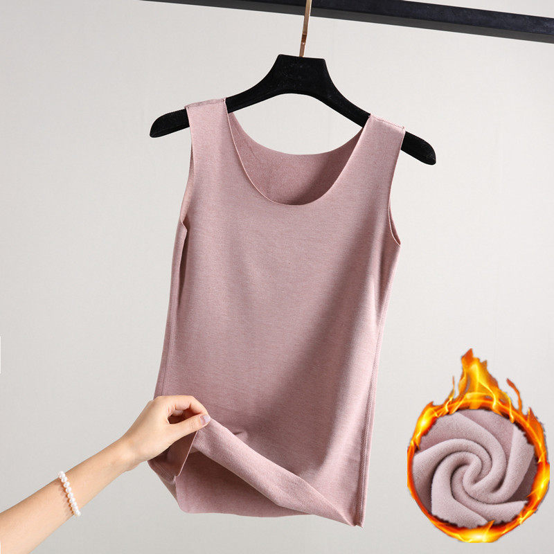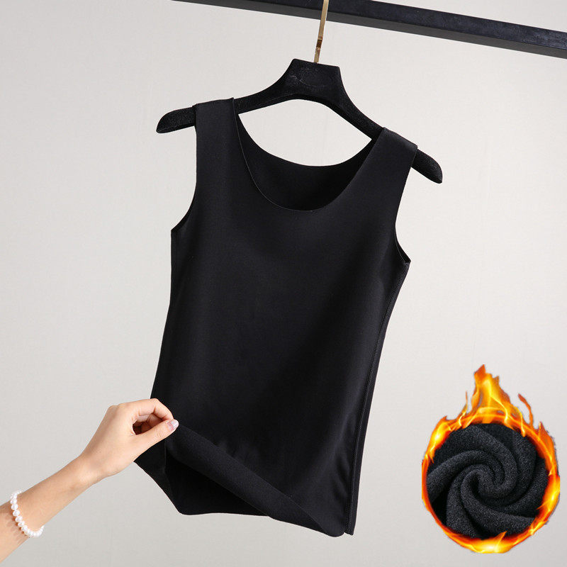 德绒无痕背心女秋冬加绒贴身内穿吊带修身加厚保暖内搭棉质打底衫