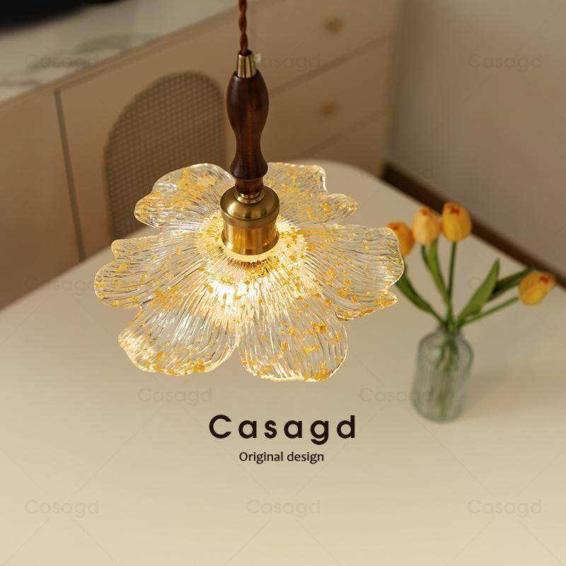 中古花瓣餐厅吊灯胡桃木简约吧台三头长餐桌灯法式复古莲韵过道灯