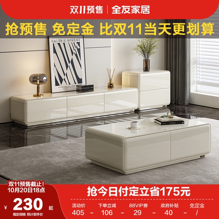 政府补贴全友家居奶油风落地电视柜茶几组合客厅收纳储物柜家具