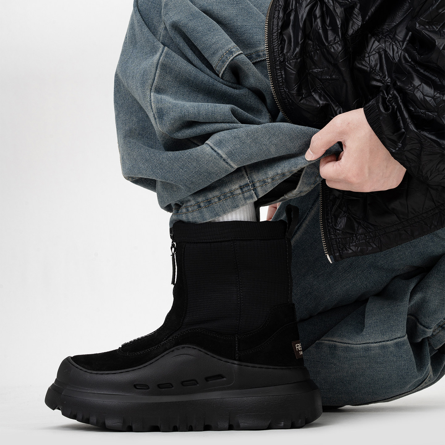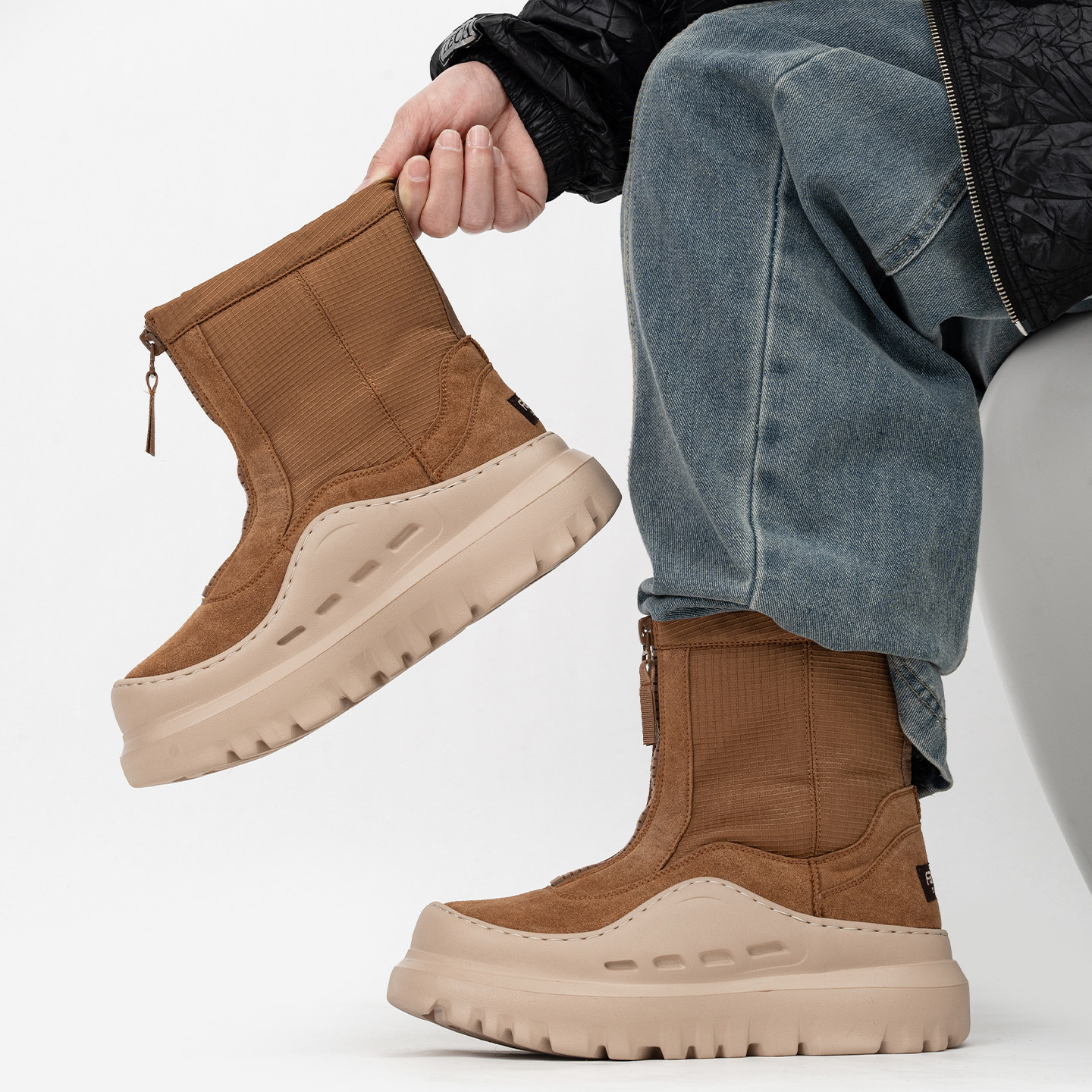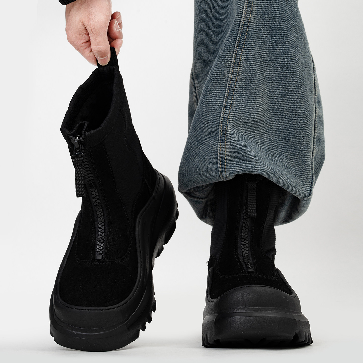 潮牌户外徒步雪地靴男女冬季加绒厚底高帮保暖棉鞋增高拉链马丁靴