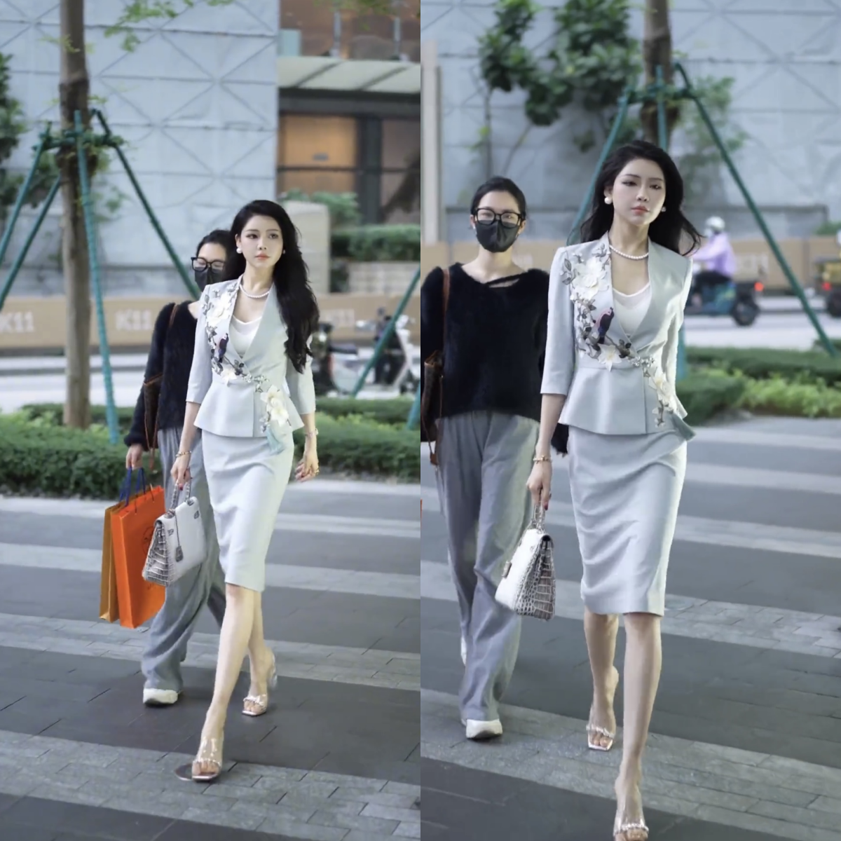 新中式国潮手工刺绣中袖西装女2025年秋季气质名媛显瘦半身裙套装