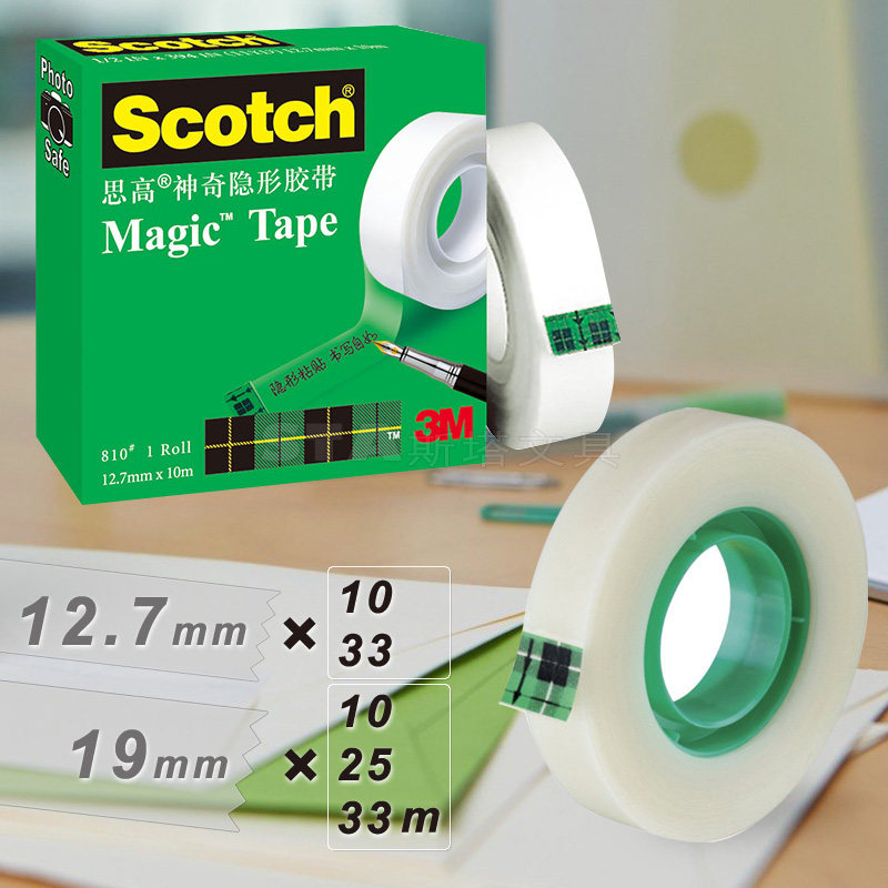 3M Scotch思高810 3/4 1/2隐形胶带易撕粘性强 办公学生修复胶带